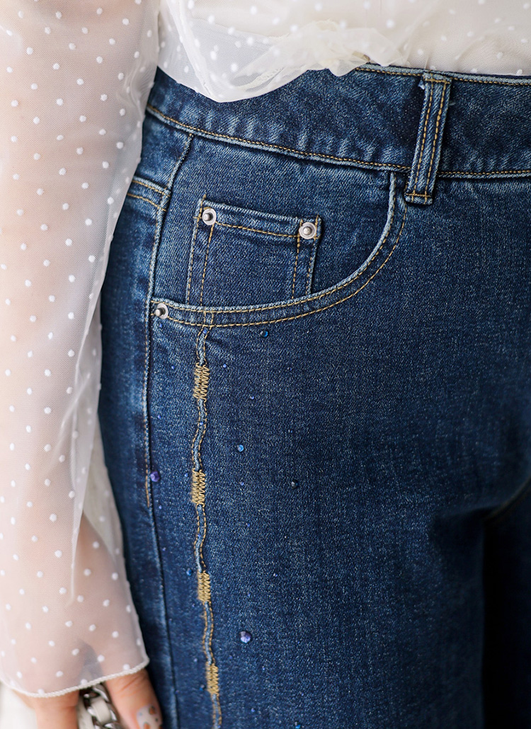 은은하게 반짝이는 사이드 자수와 핫픽스 디테일이 더해져