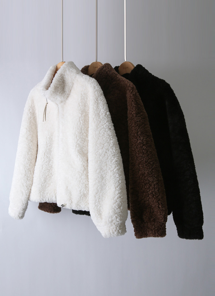 [The Onme] Fluffy Teddy High-Neck Zip Jacket