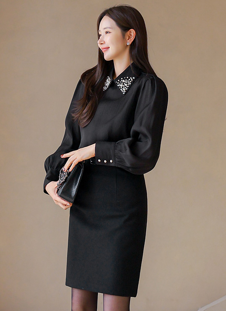 진주와 큐빅 비즈 장식이 가득한 카라가