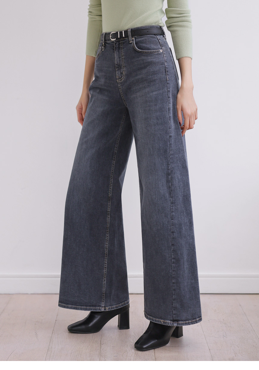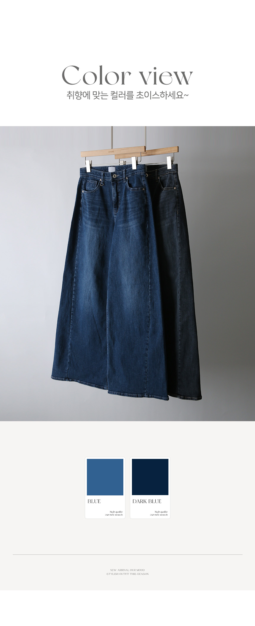 와이드하면서도 자연스럽게 퍼지는 플레어 실루엣으로