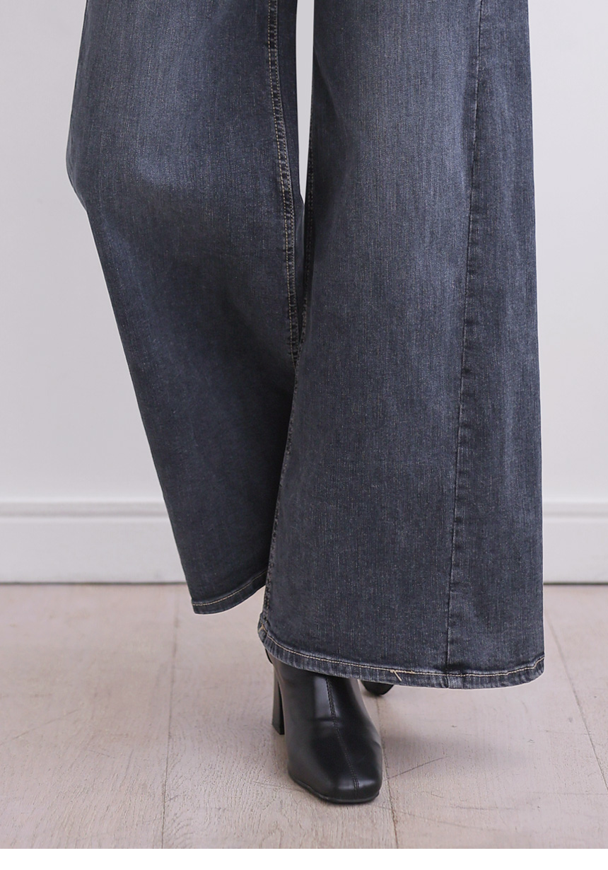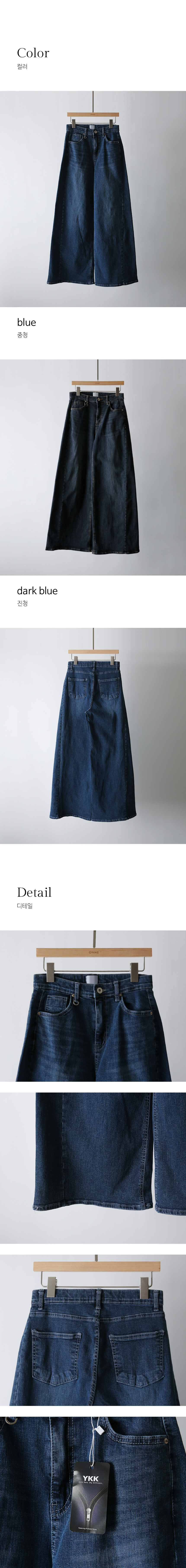 [Theonme] 루키 사선 절개라인 플레어 와이드 데님 팬츠
