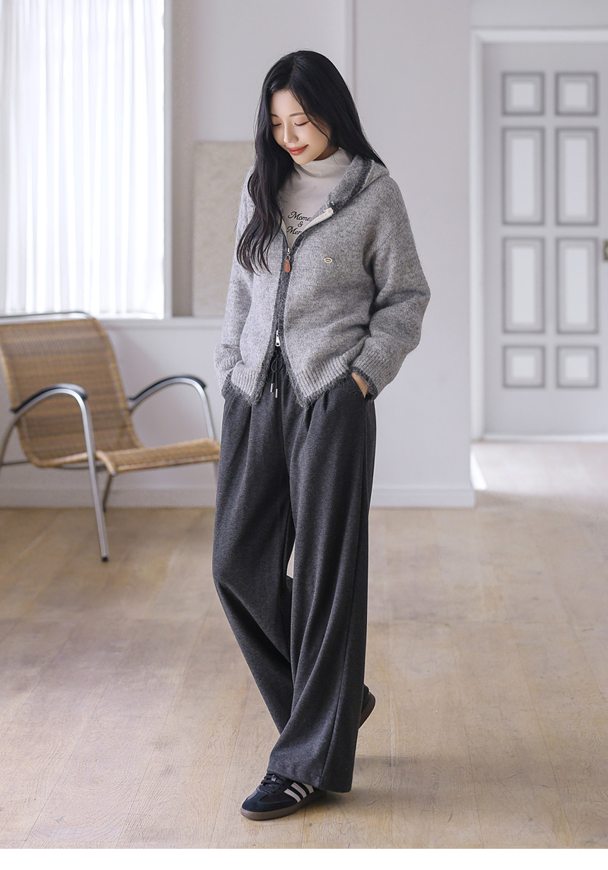 톡톡하고 따스한 무드를 전해주는 밴딩 와이드 팬츠예요 :)