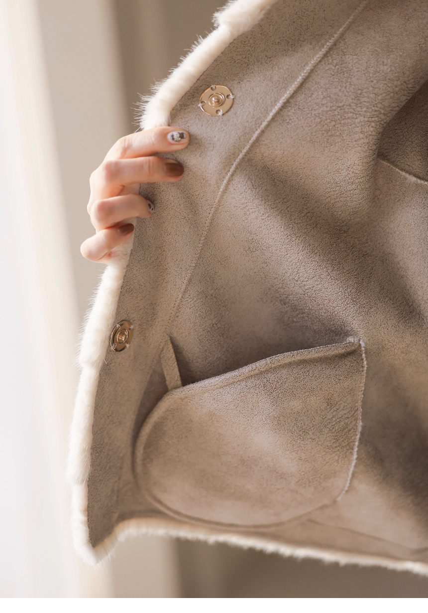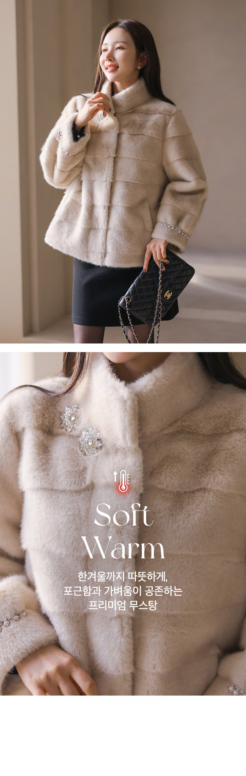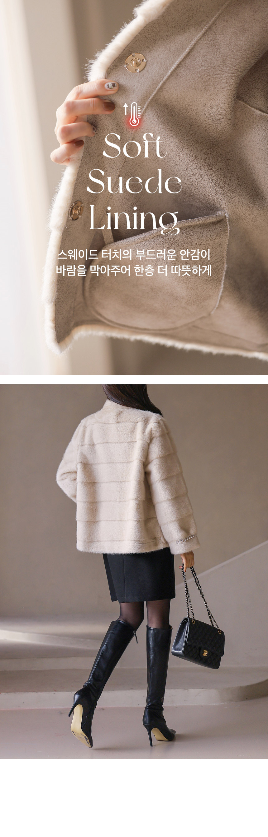 안쪽은 무스탕 처럼 되어있어 털 묻어남없이 깔끔하게 착용된답니다