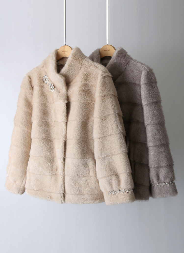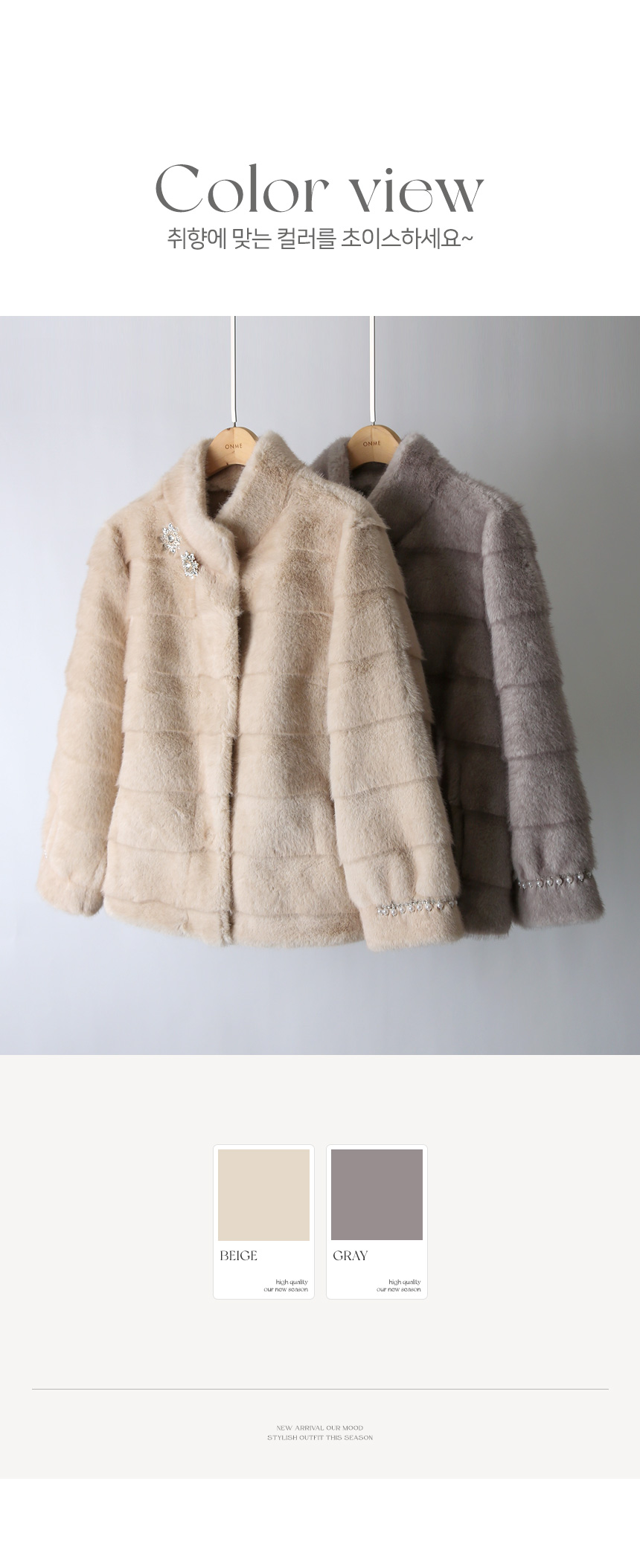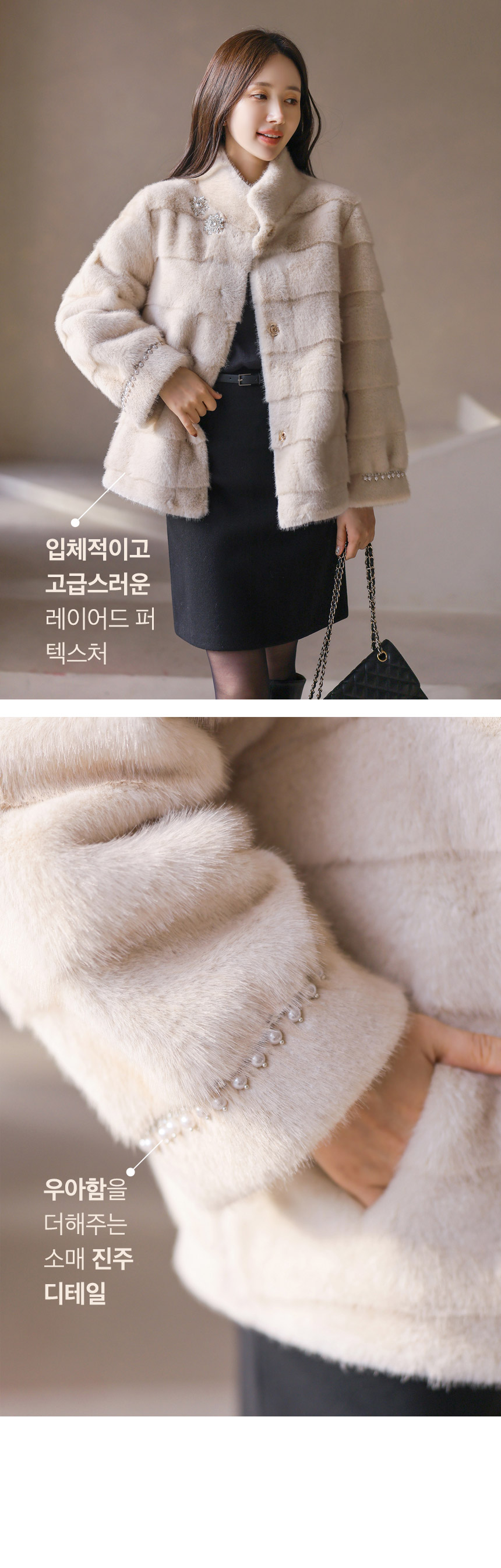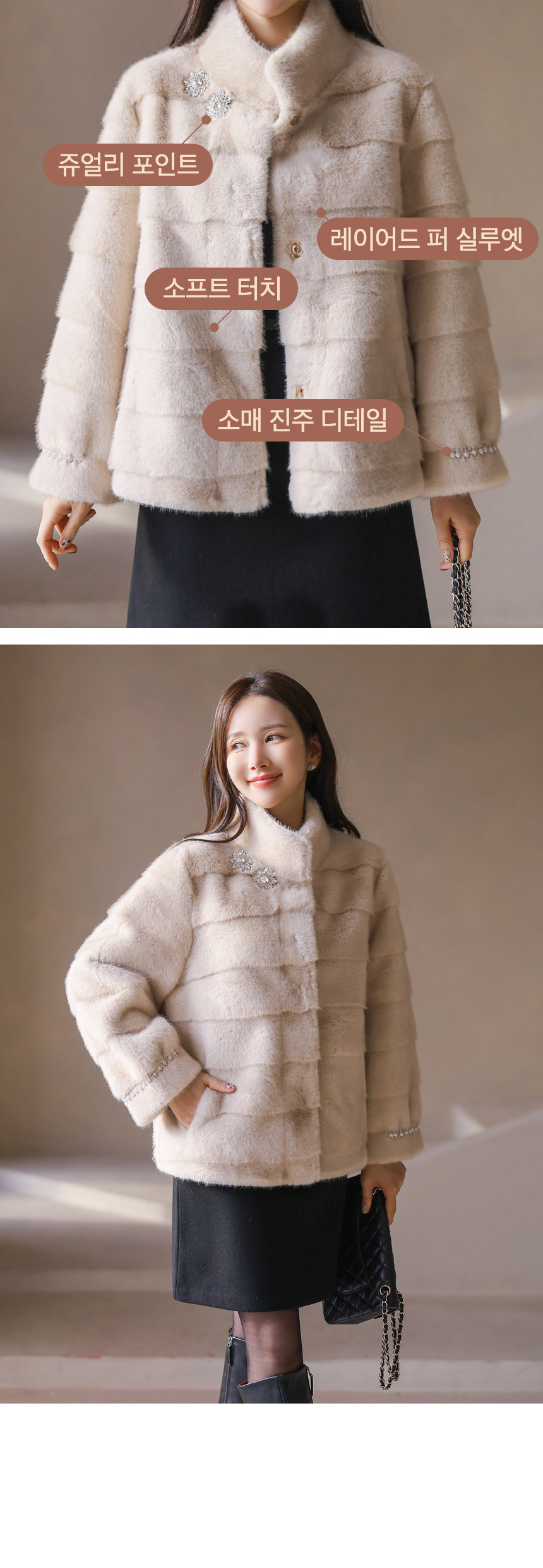글로지 쥬얼 포인트 소매 진주 디테일 캉캉 퍼 자켓
