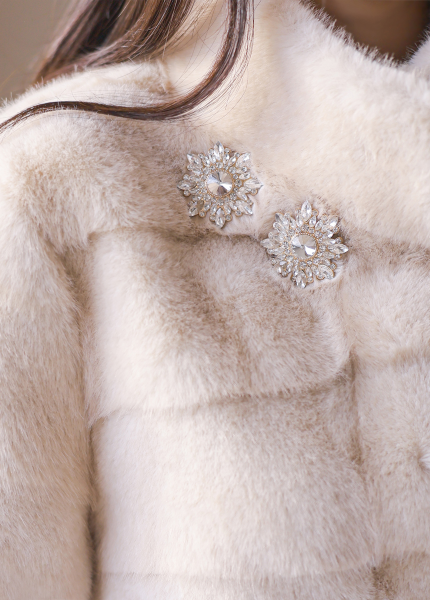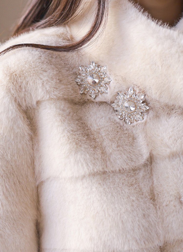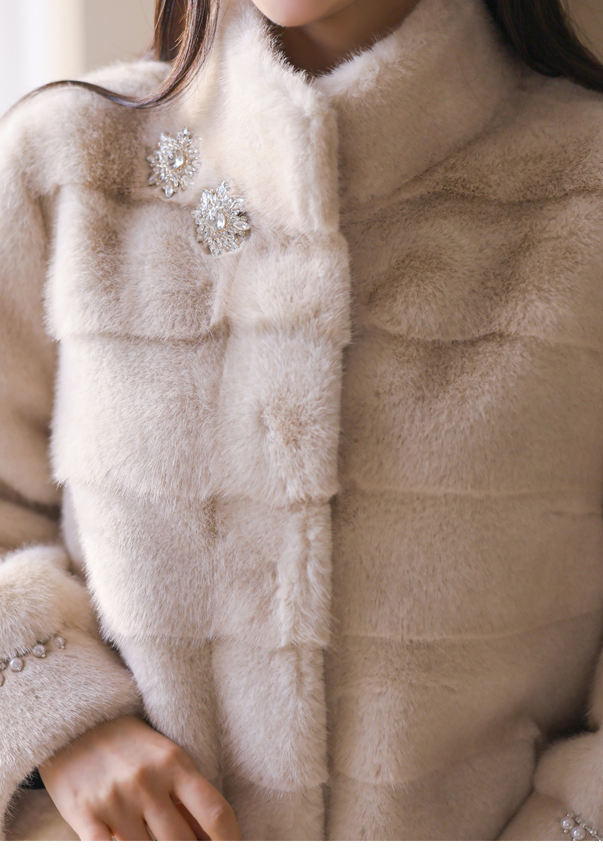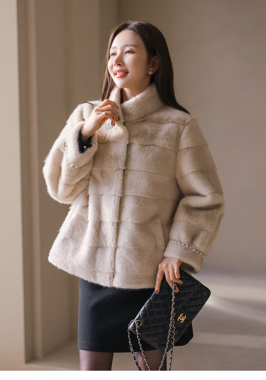 글로지 쥬얼 포인트 소매 진주 디테일 캉캉 퍼 자켓