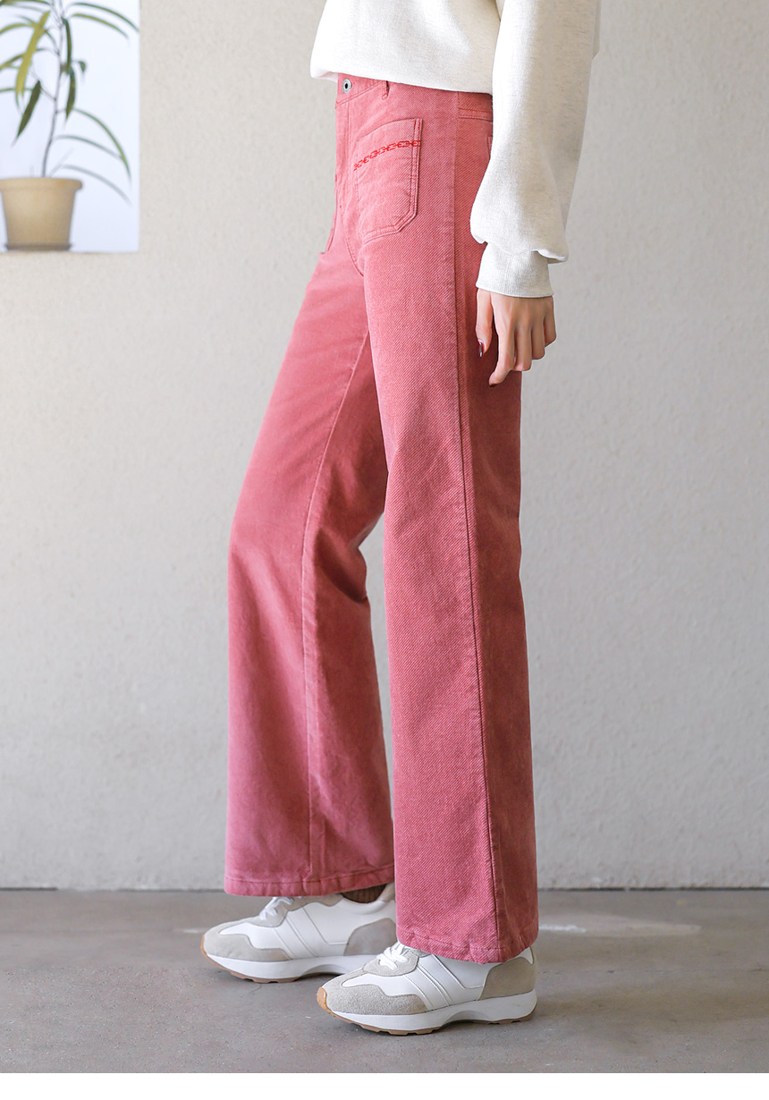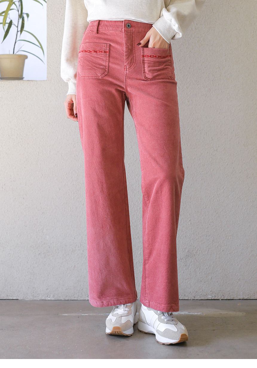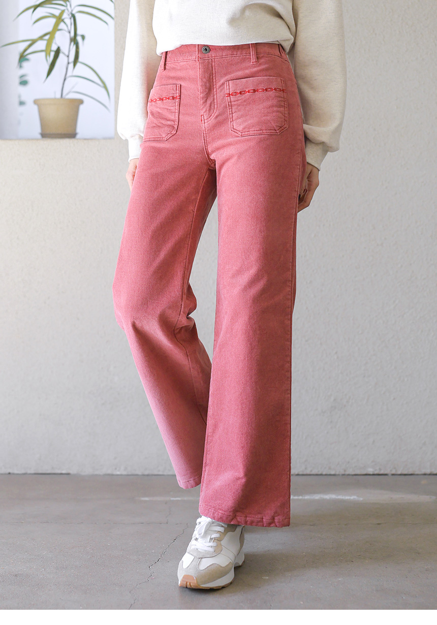 자수 포켓 코듀로이 기모 세미와이드 팬츠예요 :)