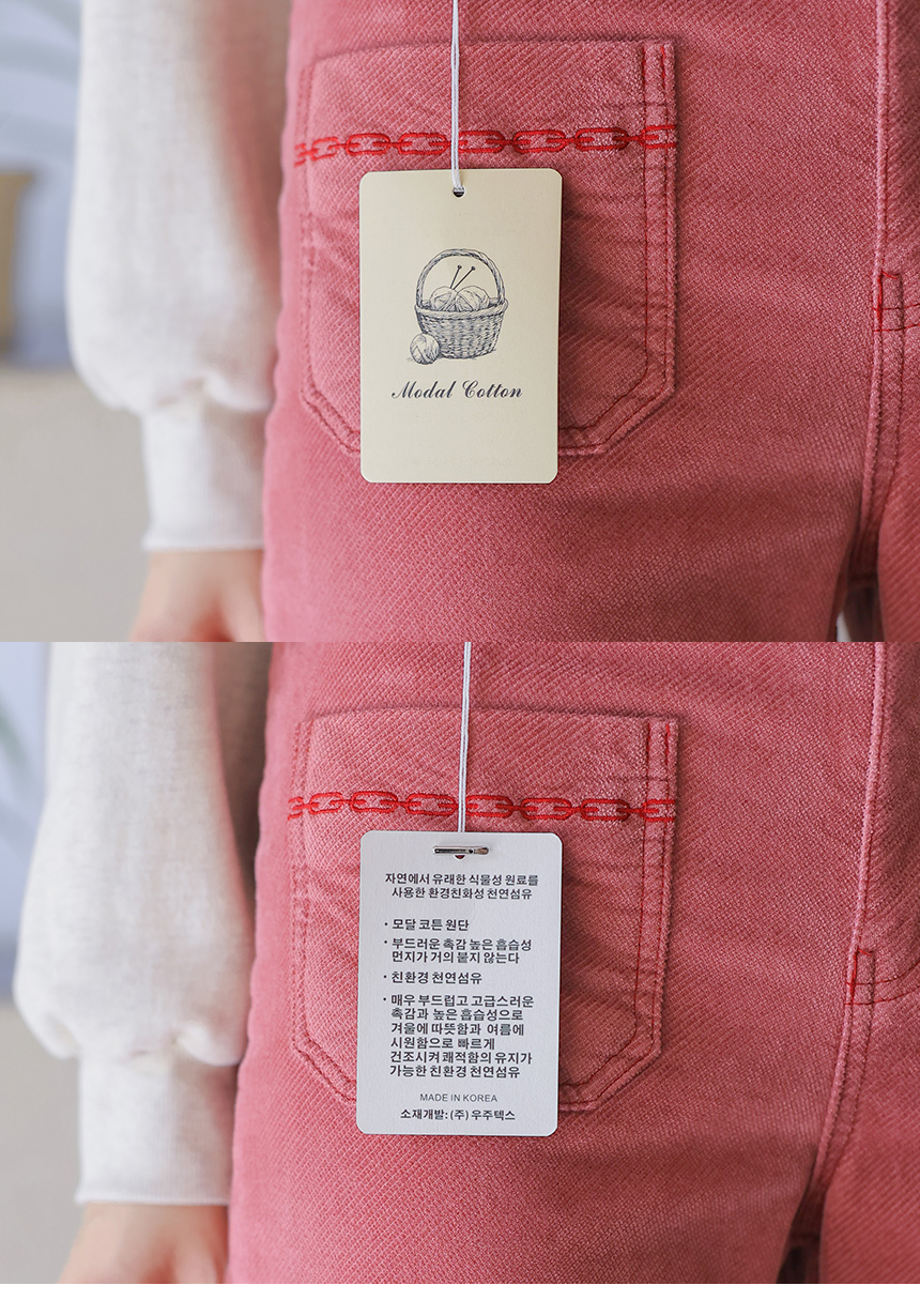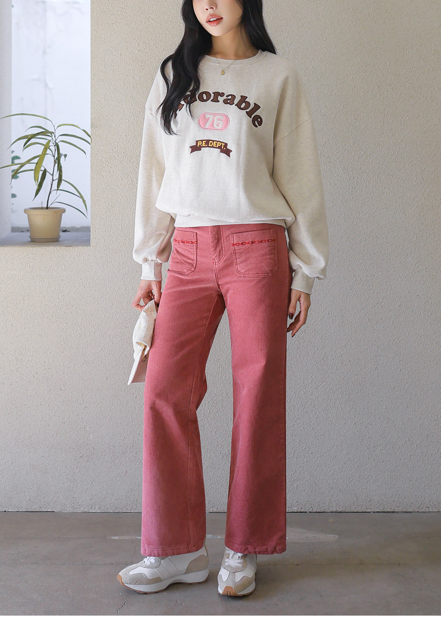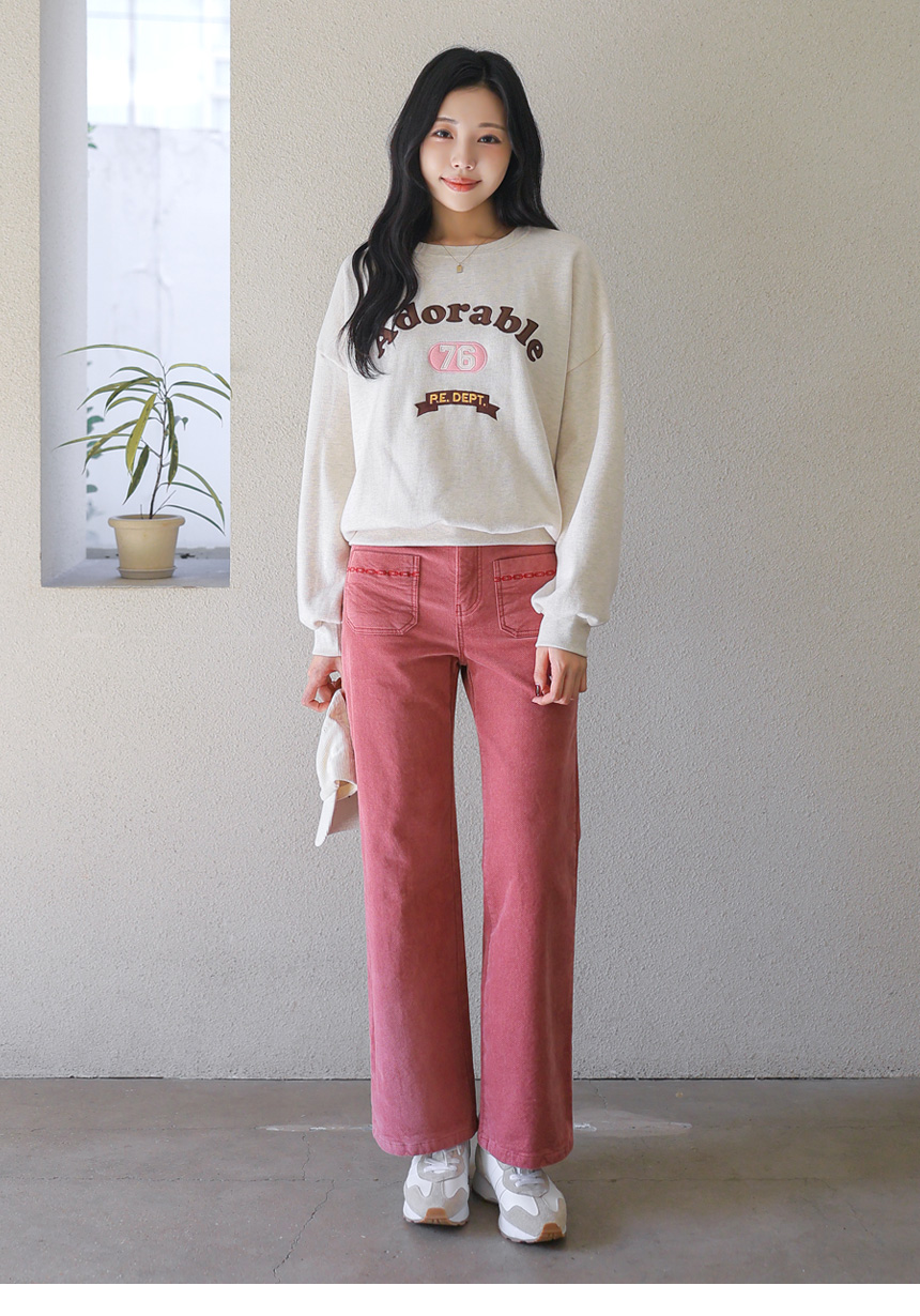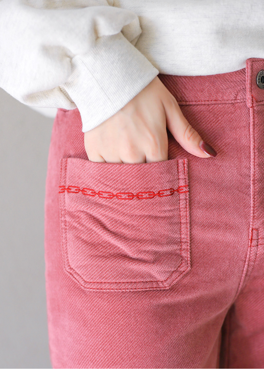 자수 포켓 코듀로이 기모 세미와이드 팬츠예요 :)