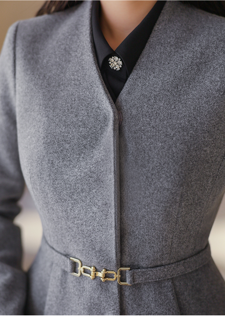 브로치를 한듯 표현된 쥬얼 버튼 포인트가 더해져