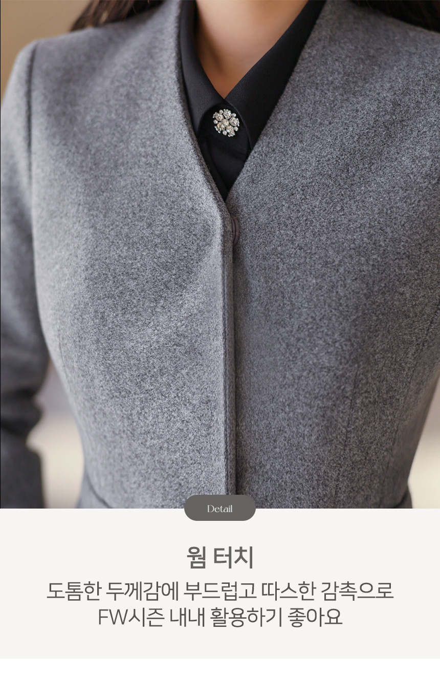 군더더기 없이 깔끔한 네크라인과 히든 버튼이 모던한 맵시를 연출해요