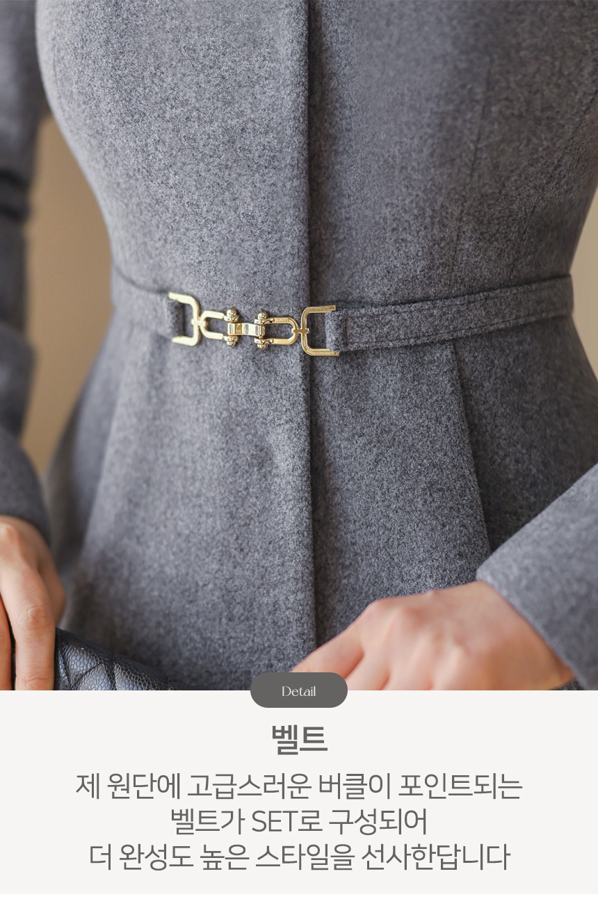 클래식한 금장 버클 디테일이 자켓의 분위기를 한층 더 고급스럽게 표현한답니다