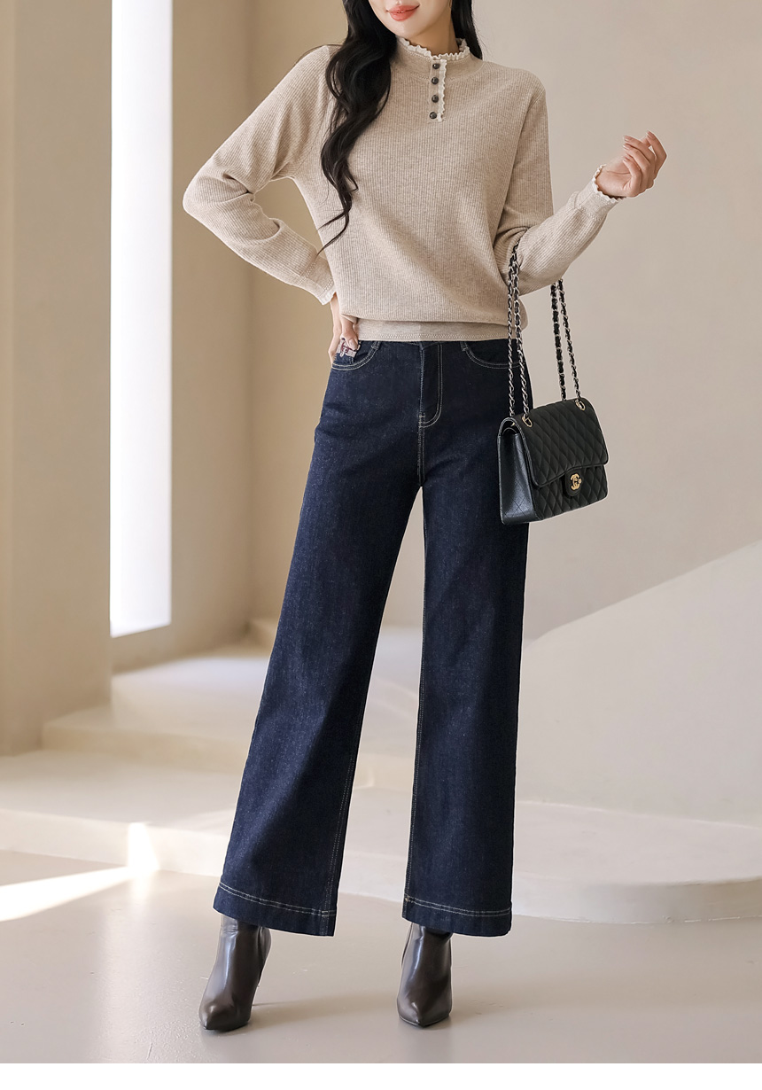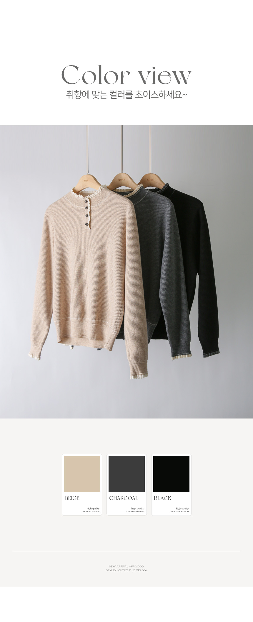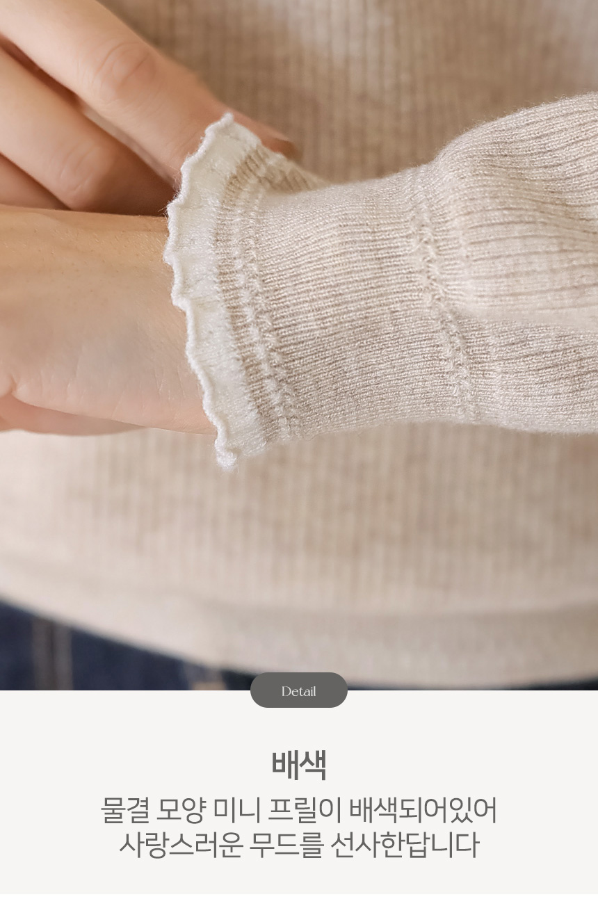 사랑스럽게 포인트 되는 반하이넥 골지 니트에요