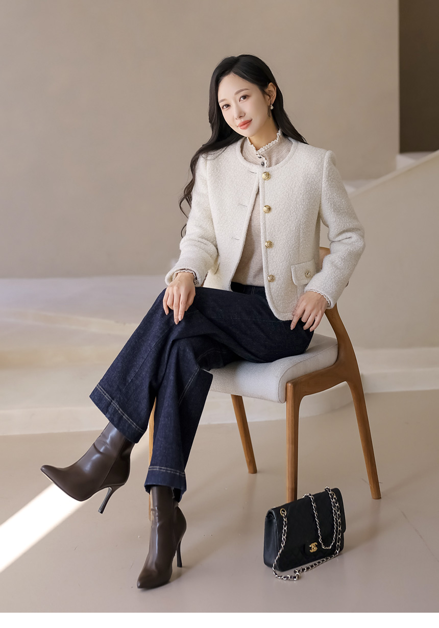 부드럽게 목을 감싸주는 반하이넥 디자인에