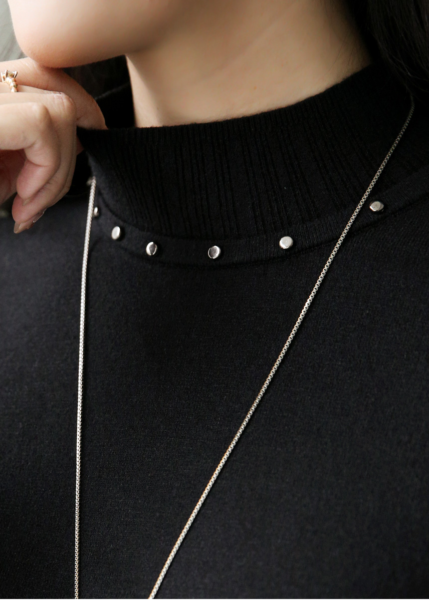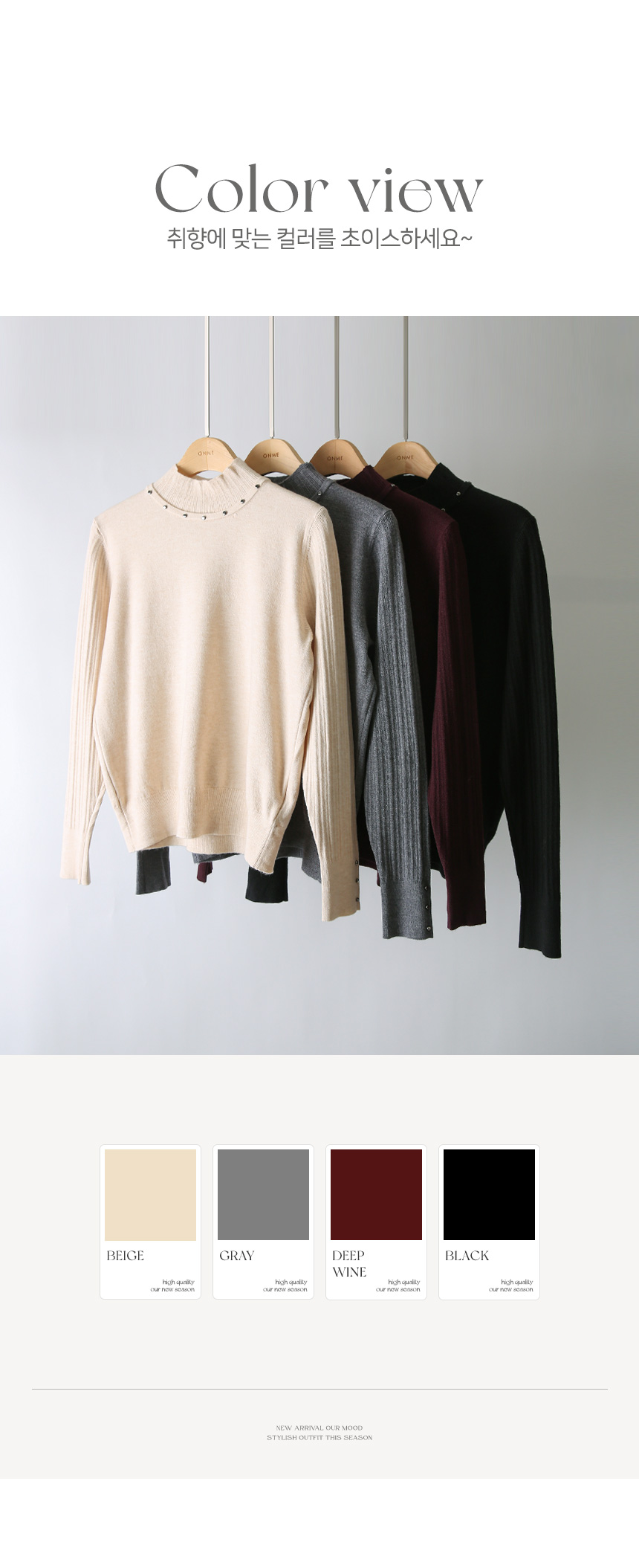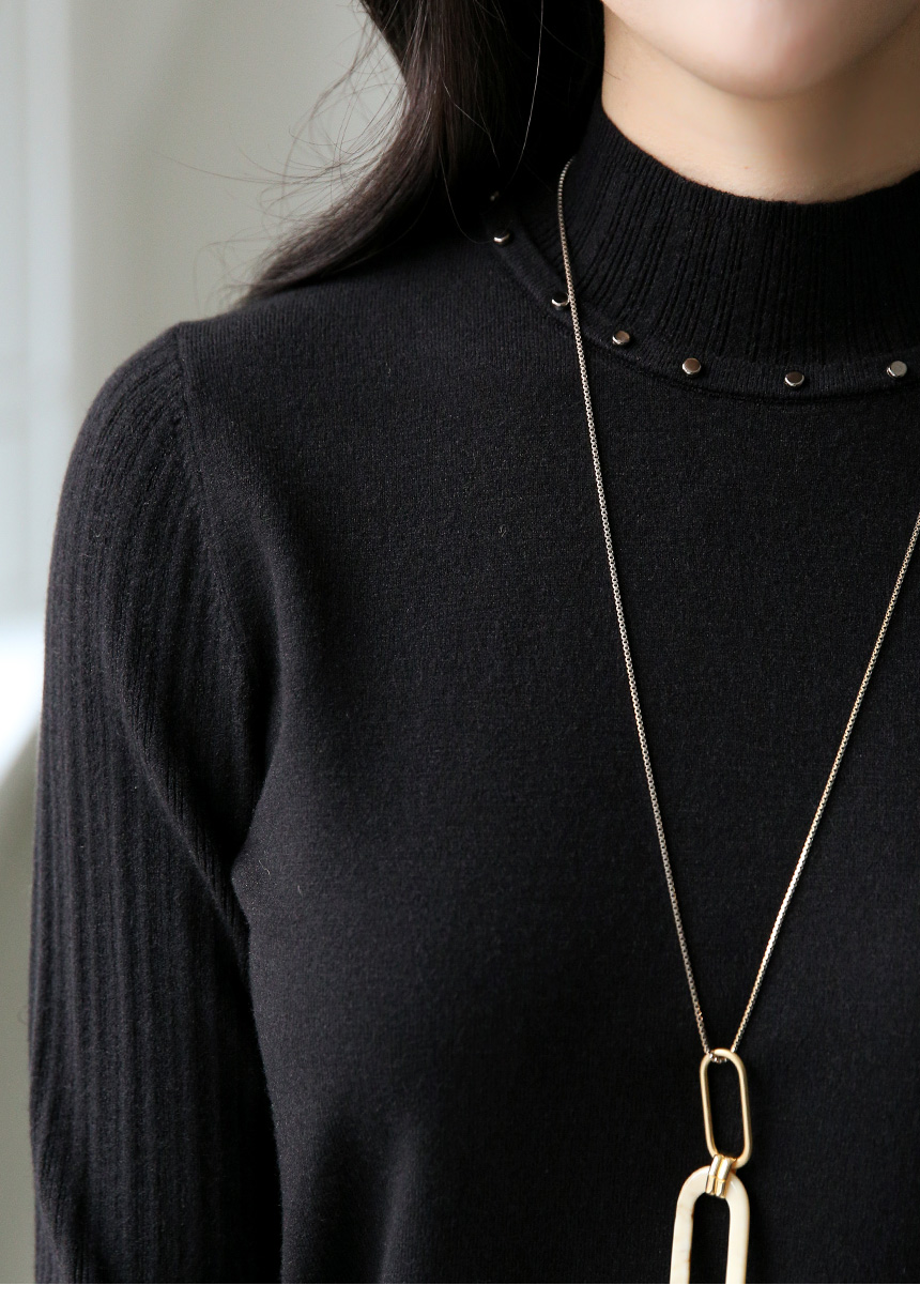 론비에 스터드 포인트 골지 레이어드 반목 폴라 니트