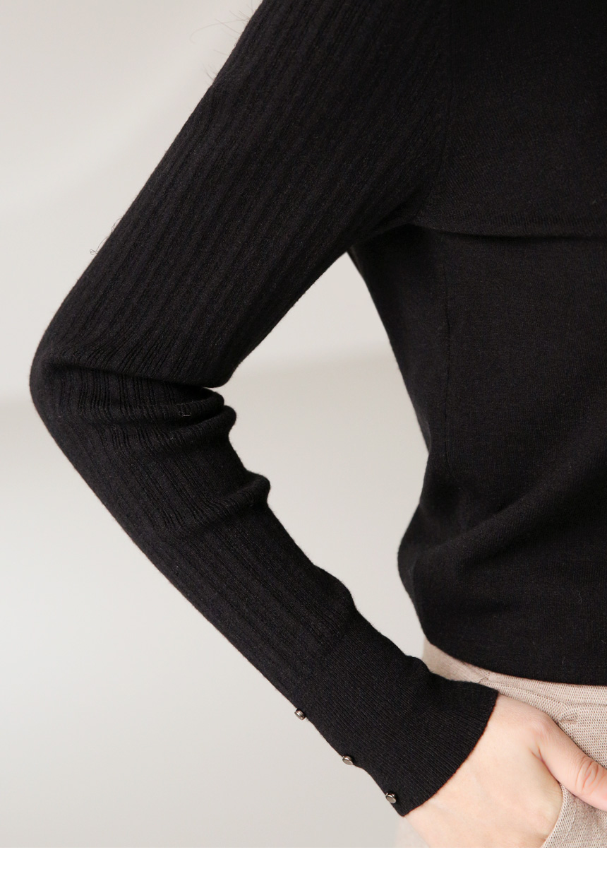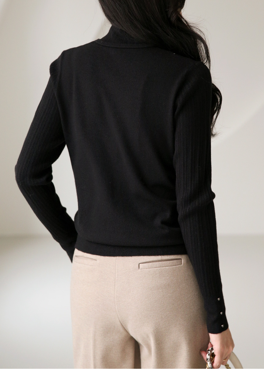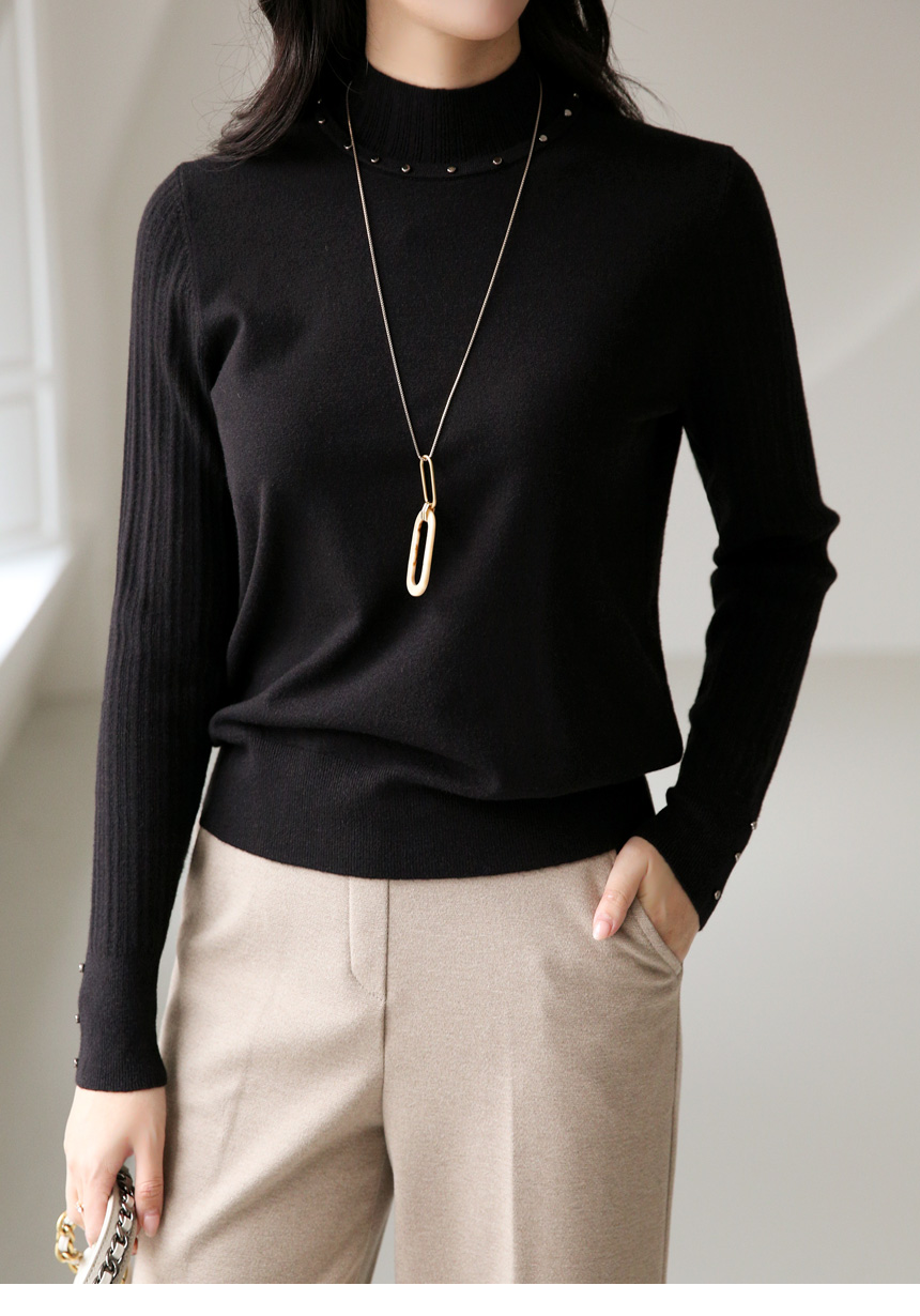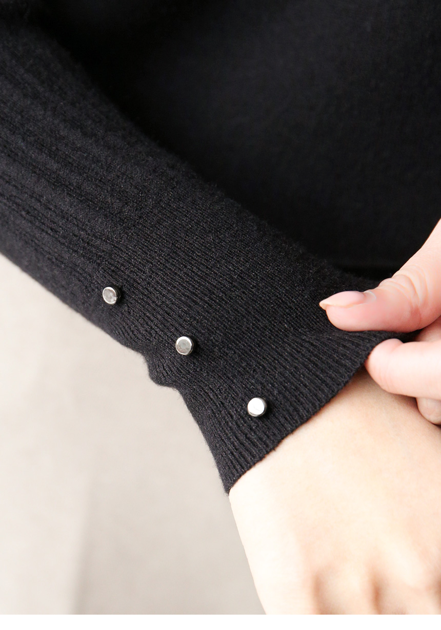 론비에 스터드 포인트 골지 레이어드 반목 폴라 니트