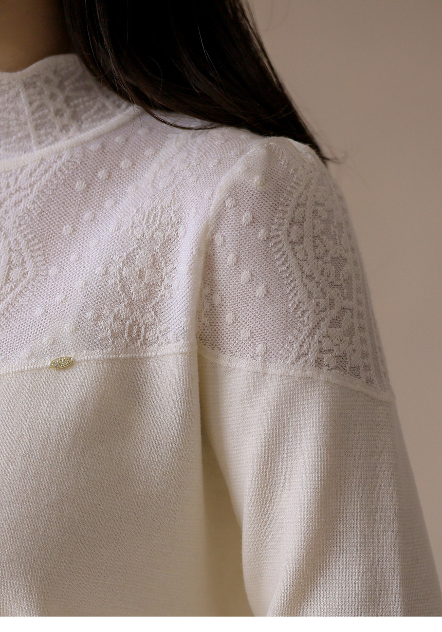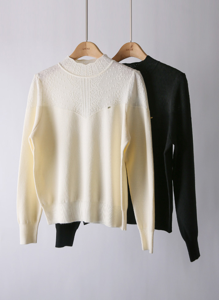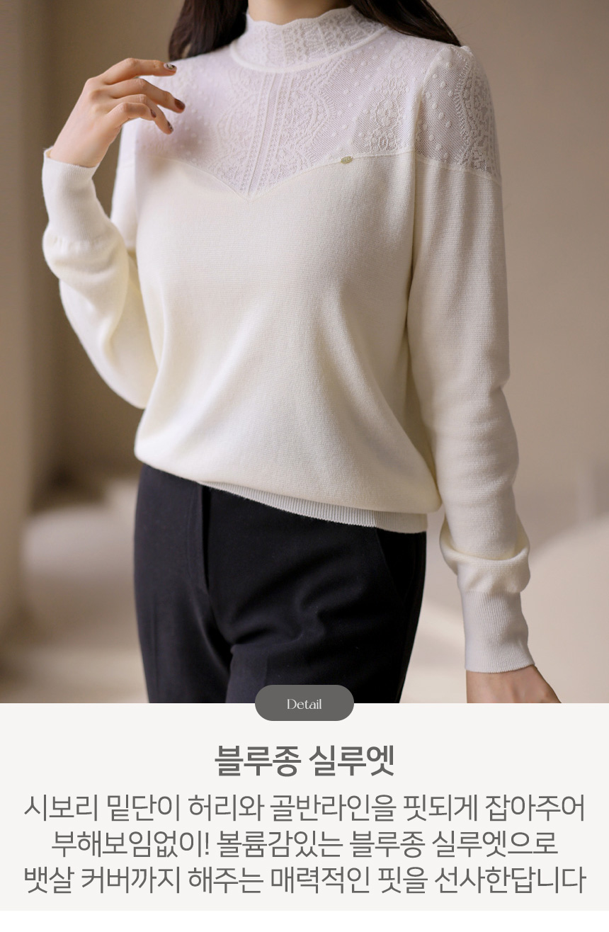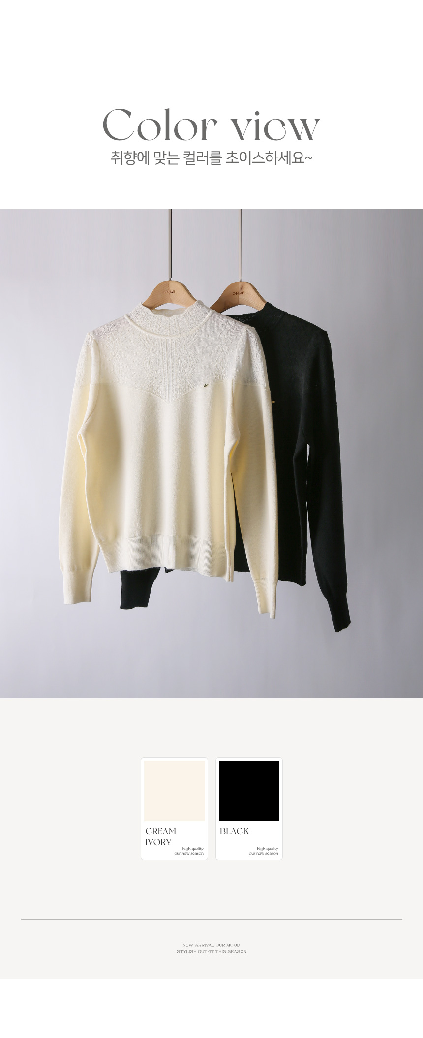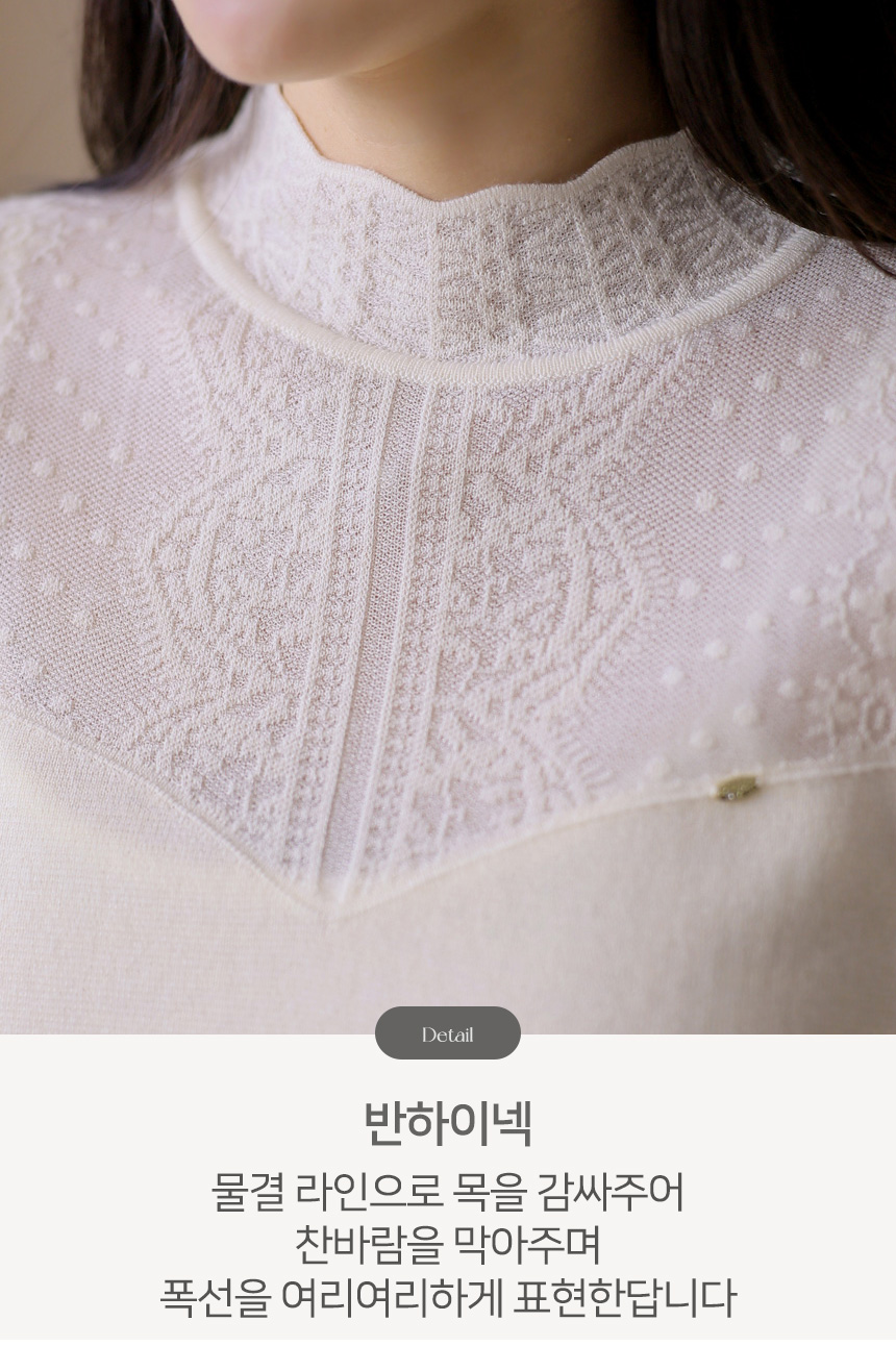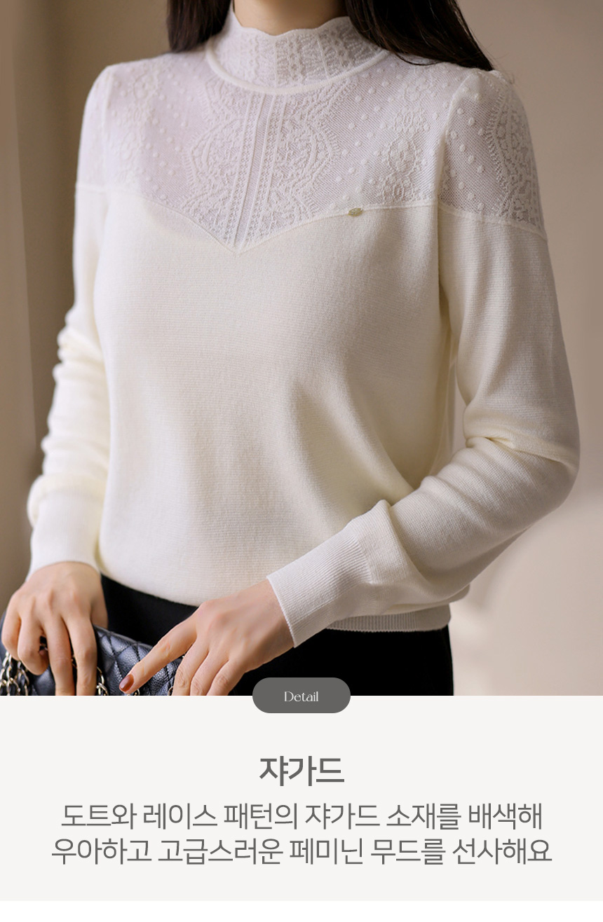 리로사 하트 라인 레이스 도트 쟈가드 배색 반하이넥 니트