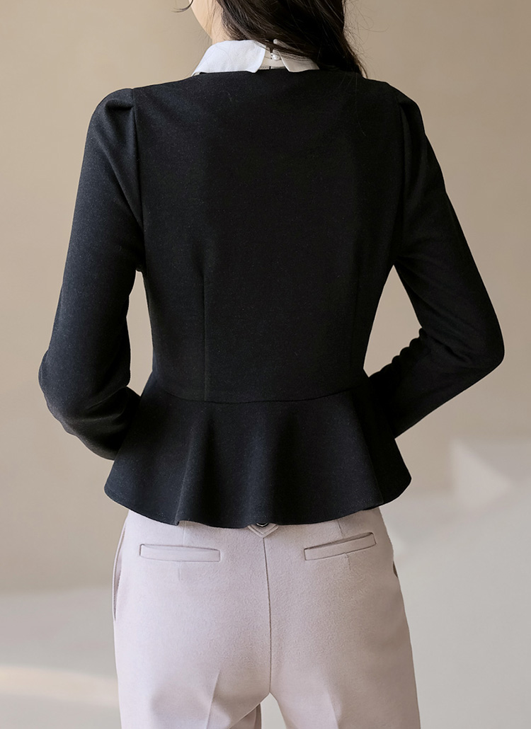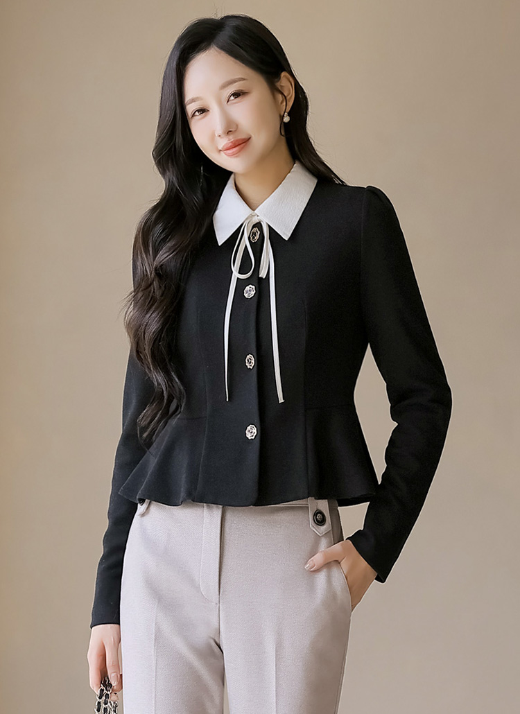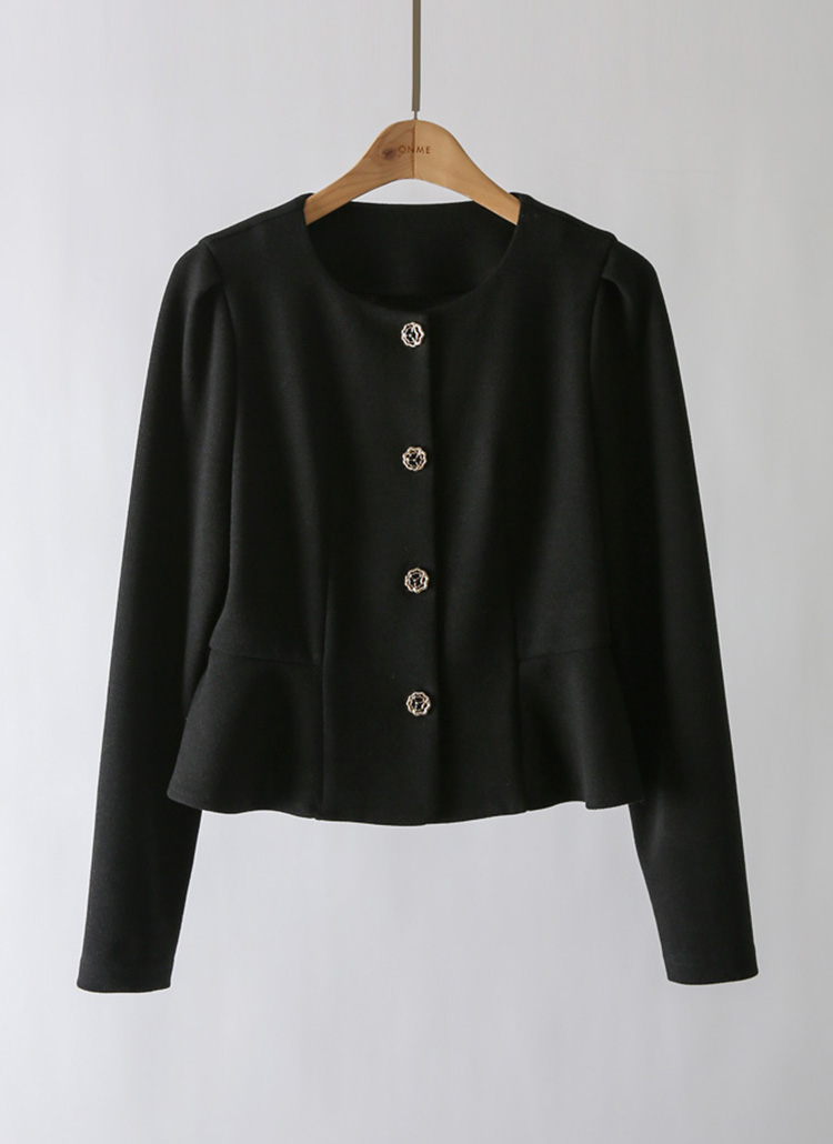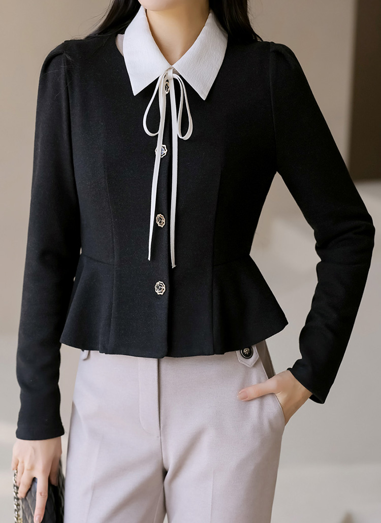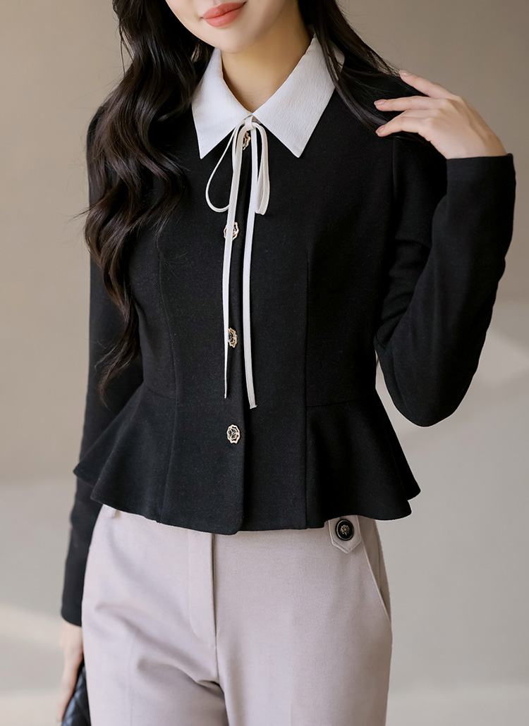 [A soft, warm peplum blouse with elegant rose-shaped gold buttons that highlight a refined silhouette, offering graceful style for office, dates, and gatherings.]