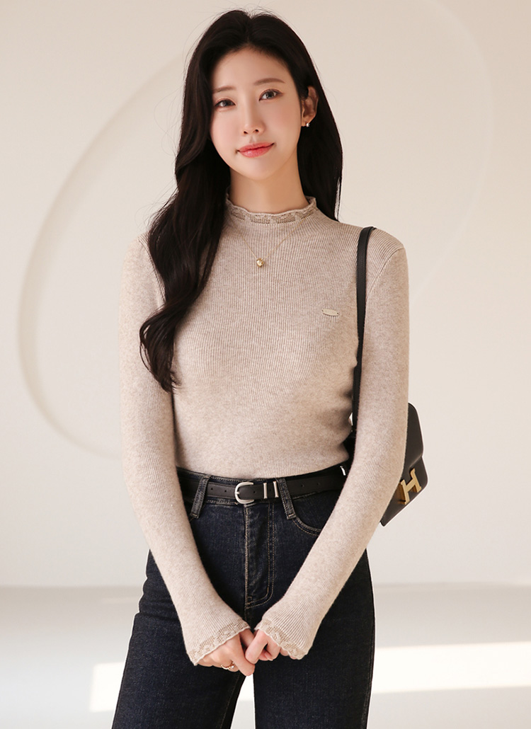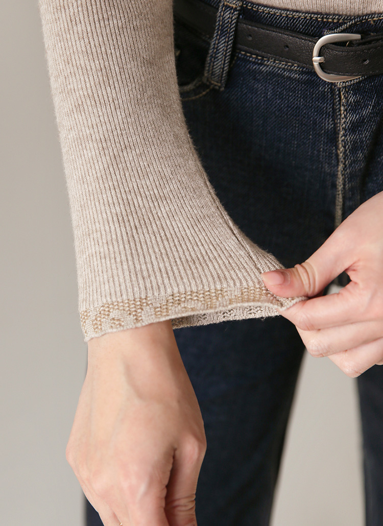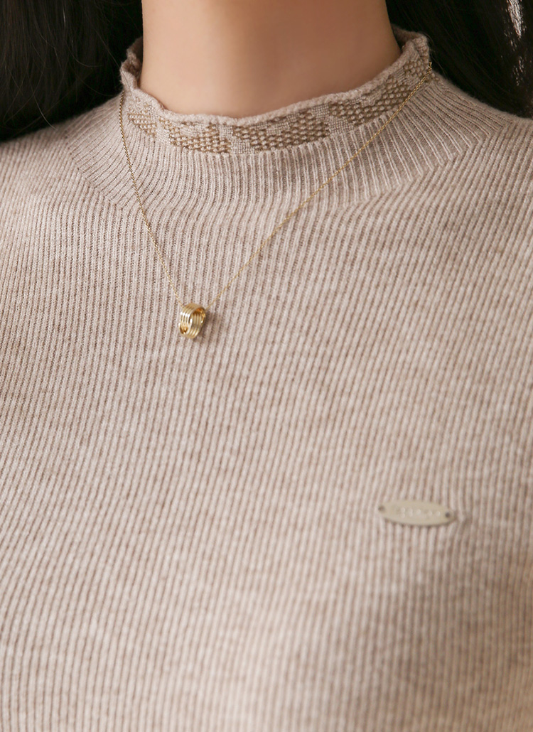 [A sleek rib-knit silhouette with delicate jacquard edges and a subtle pendant accent, creating a feminine, polished look that layers effortlessly year-round.]
