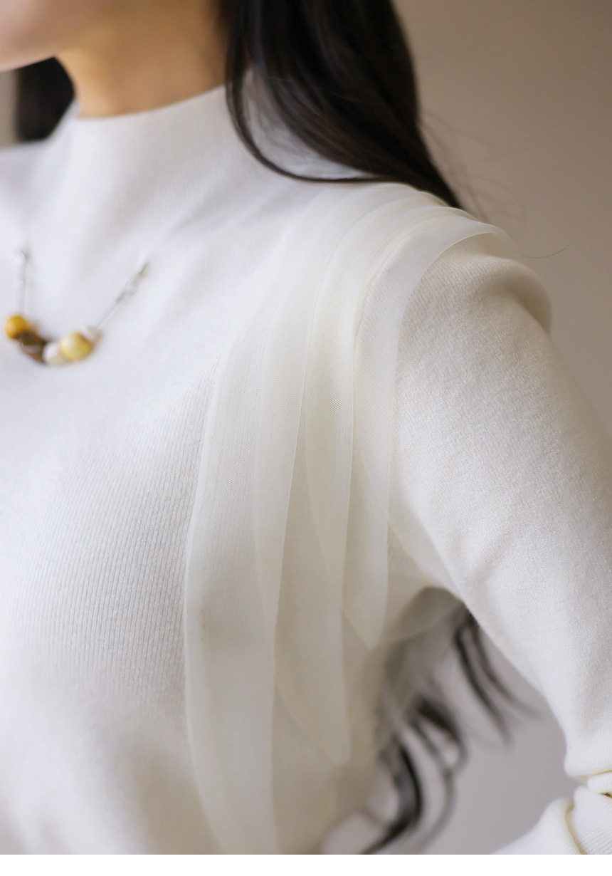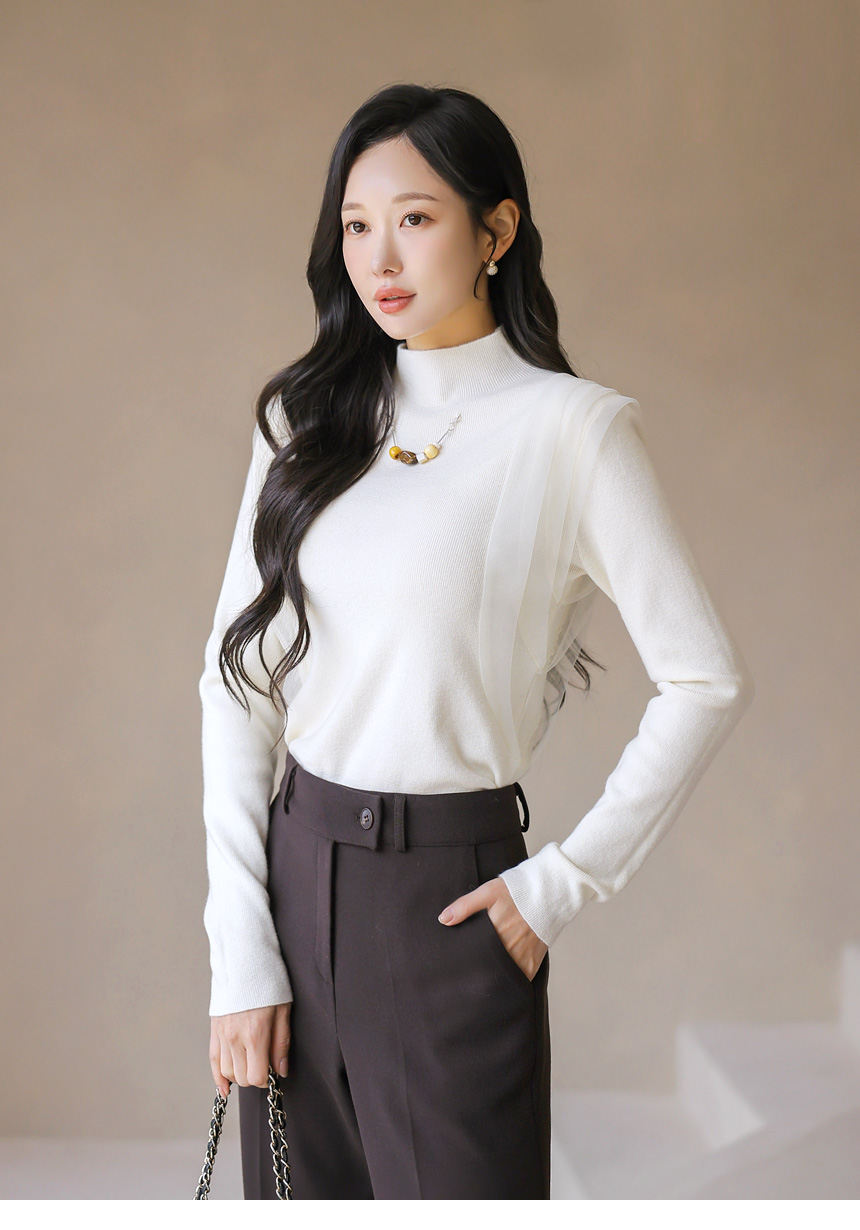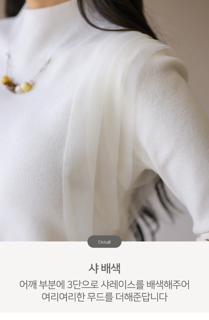 반하이넥 슬림 실루엣에 사랑스러운 디테일을 더한 니트에요