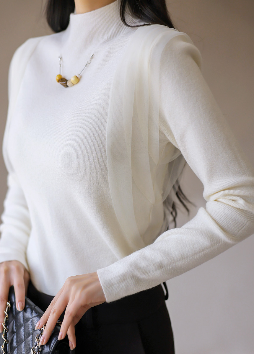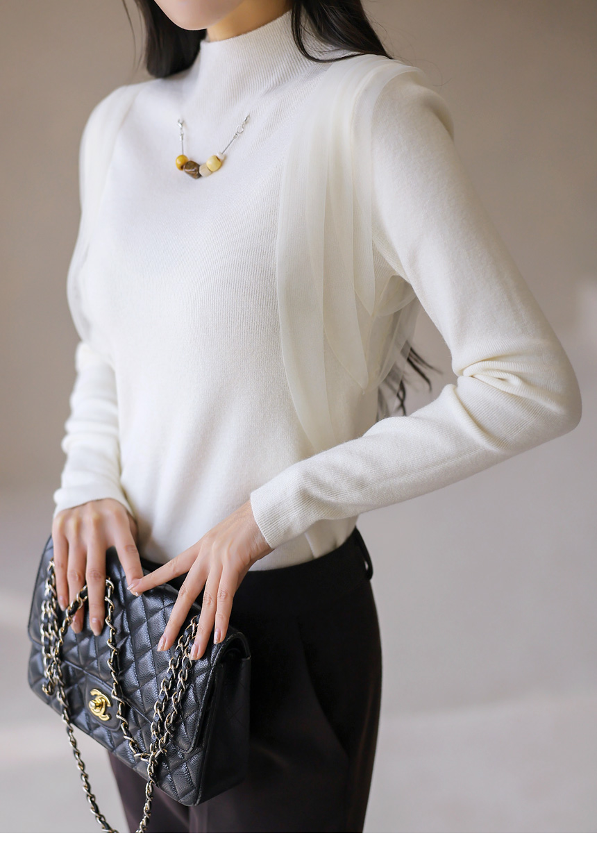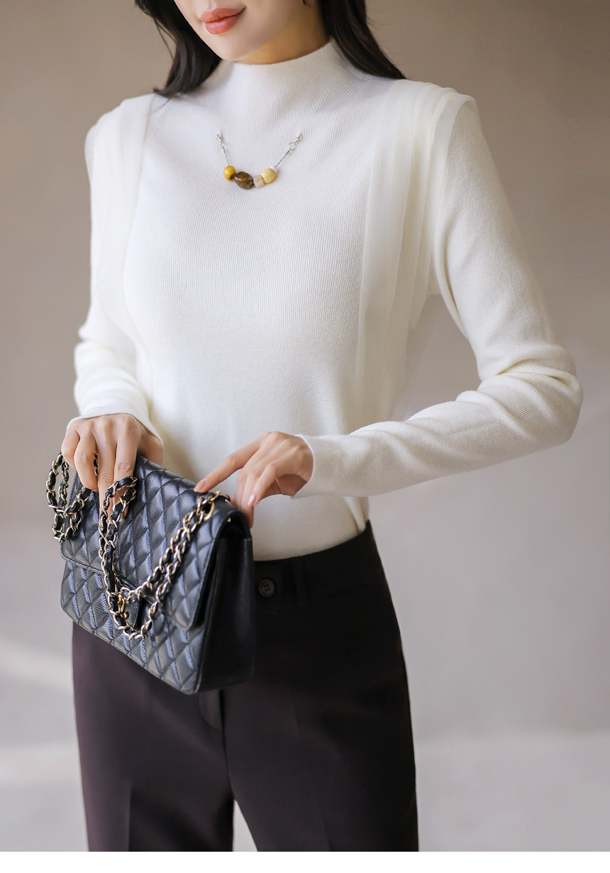 반하이넥 슬림 실루엣에 사랑스러운 디테일을 더한 니트에요