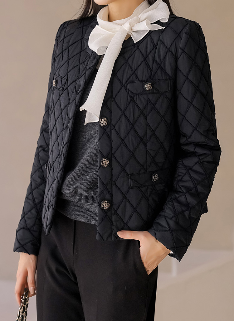 가벼운 따뜻함, 우아한 고급스러움을 동시에 선사하는 자수 퀄팅 자켓이에요