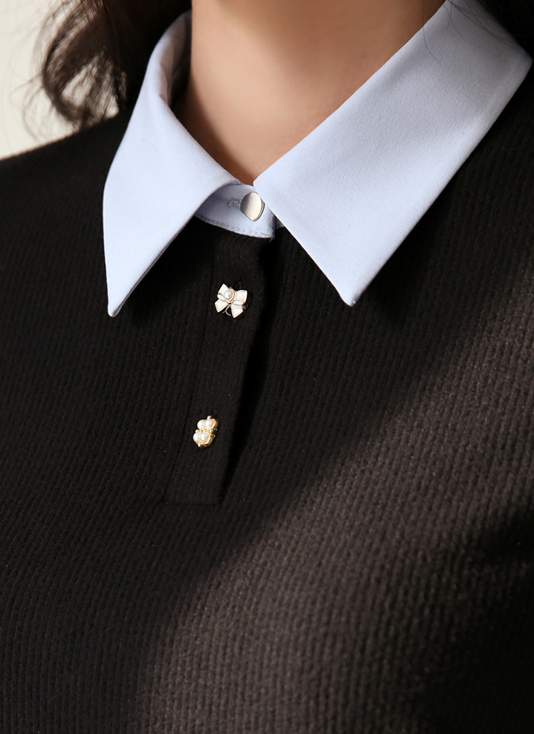 깔끔한 카라 디자인과 배색된 소매 버튼 포인트로