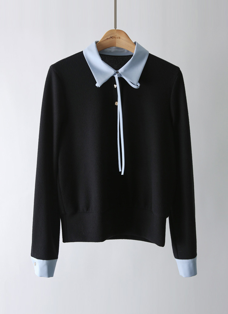 [LouisAngel] Charm Tie Contrast-Edge Blouse Tee