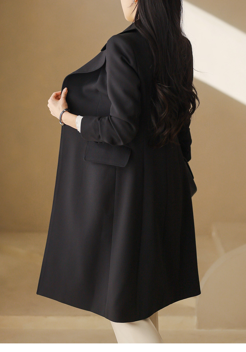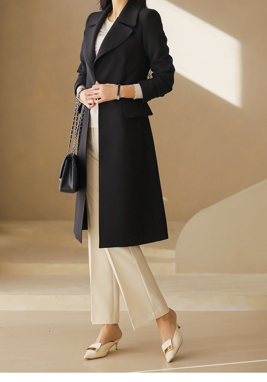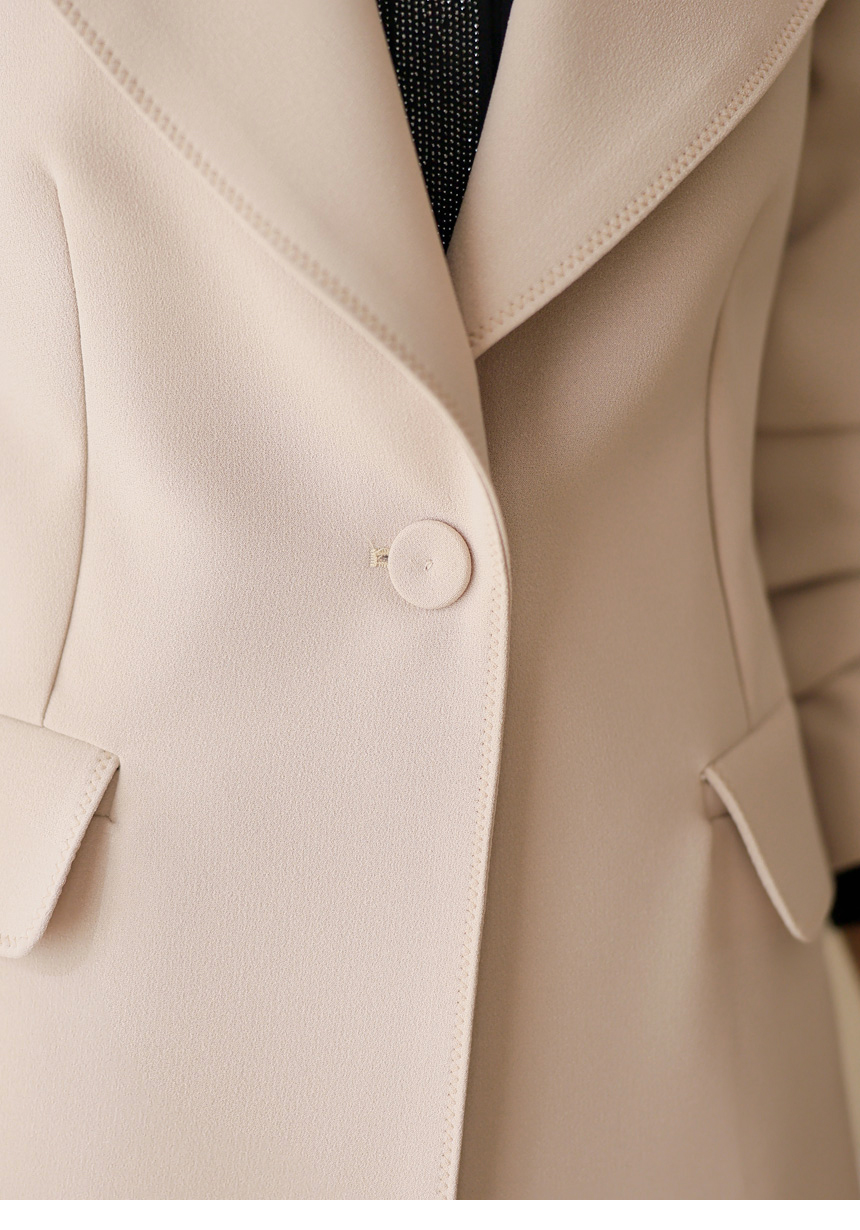 [A smooth single-button closure and wide lapels frame a modern, elongated shape, delivering warm structure and an effortlessly sophisticated presence in cool weather.]