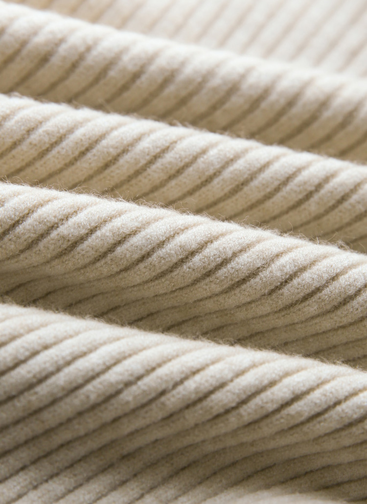 [A soft ribbed knit with a relaxed mock-neck that feels warm yet breathable, creating a smooth silhouette ideal for layering or effortless everyday looks.]