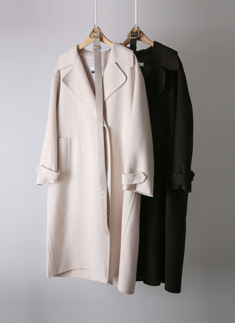 섬세한 디테일과 고급스러움이 공존하는 울100 핸드메이드 롱 코트에요