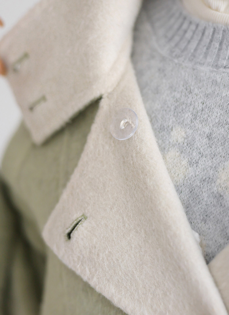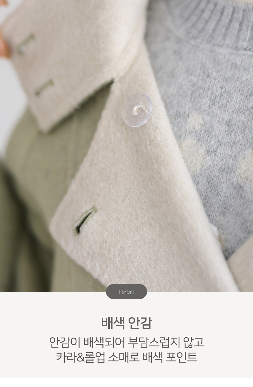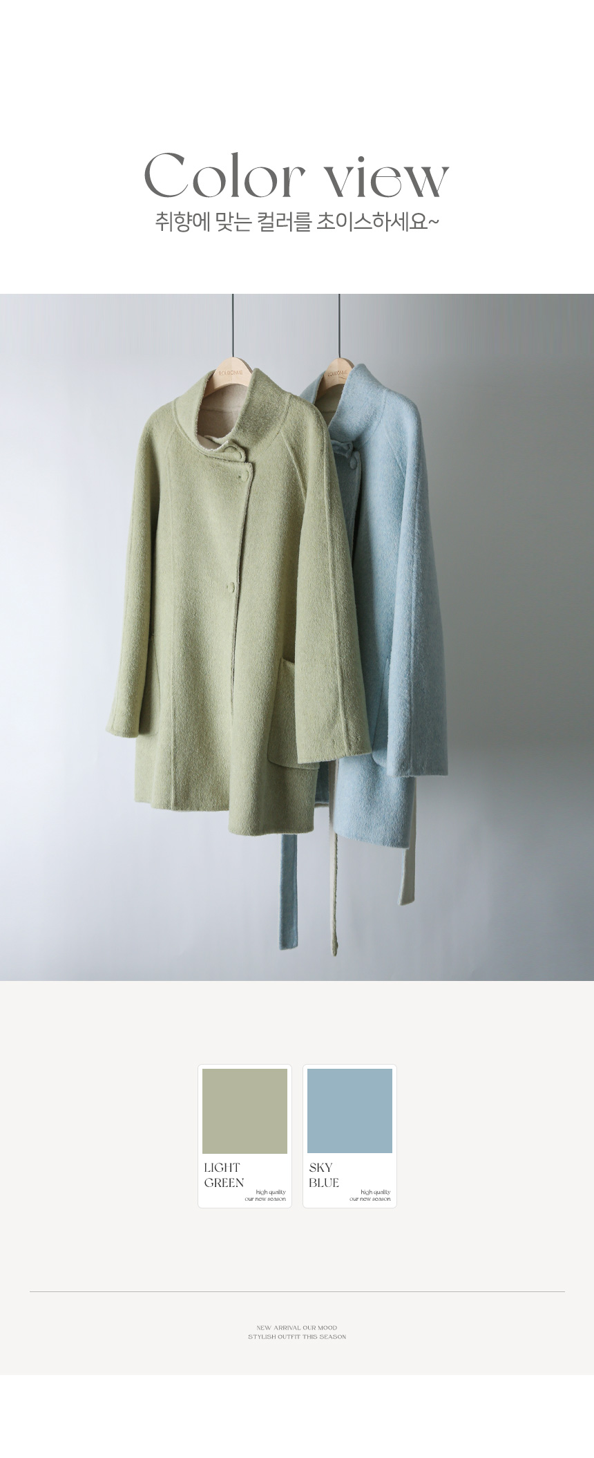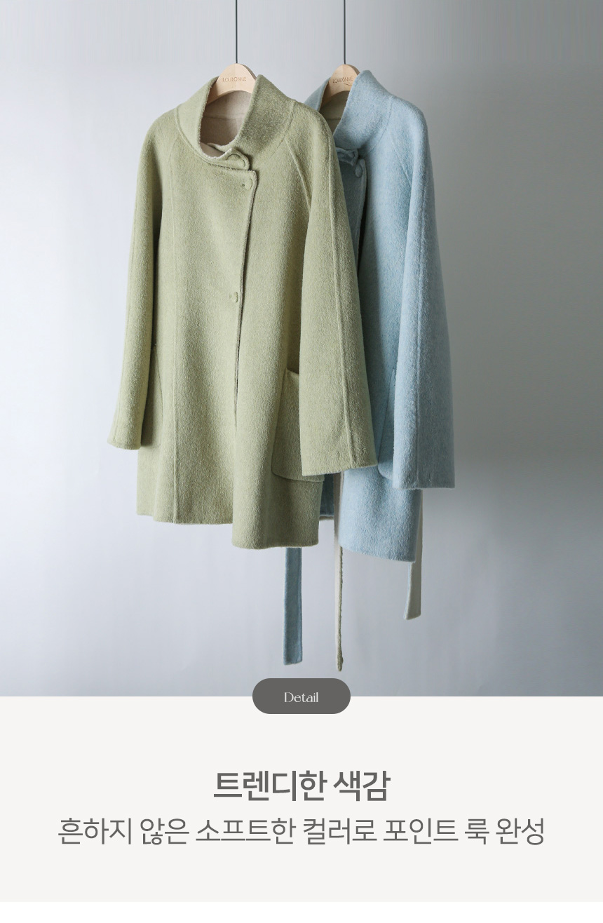 소프트한 파스텔 톤이 돋보이는 울 하프 코트예요 :)