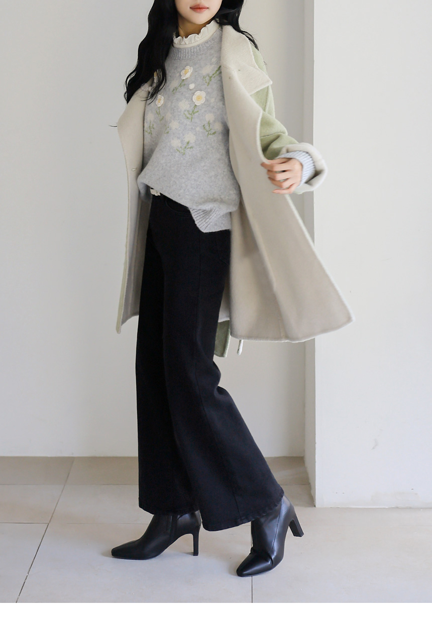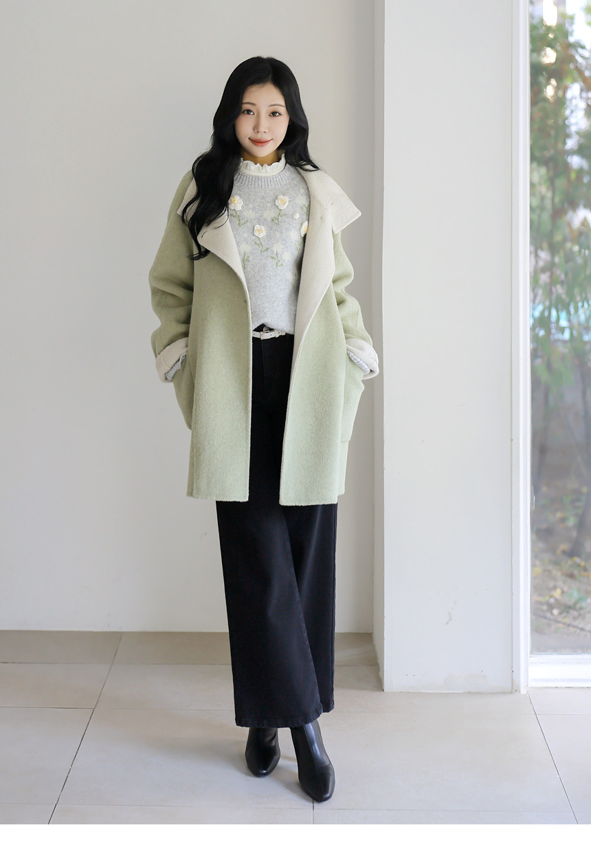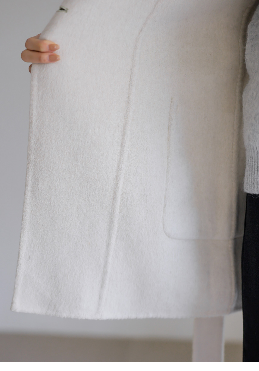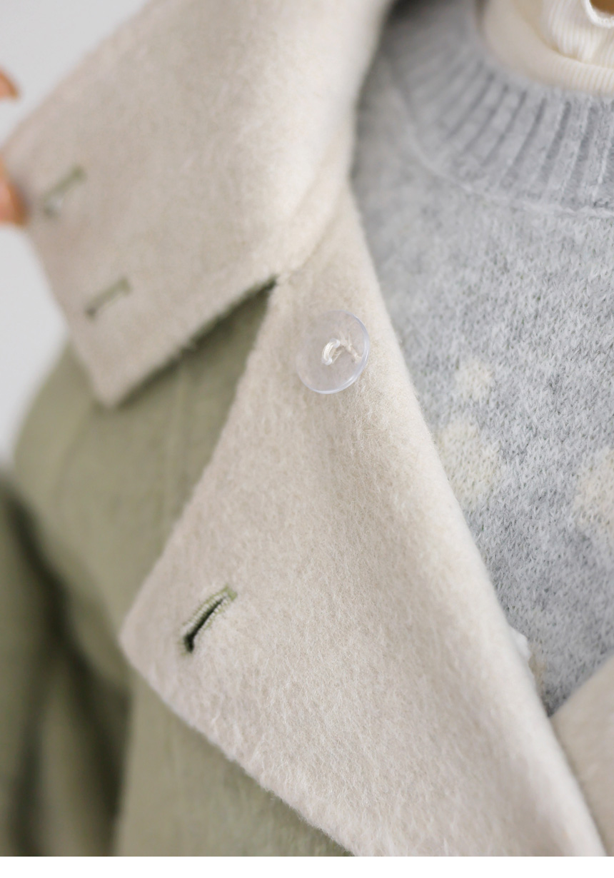 소프트한 파스텔 톤이 돋보이는 울 하프 코트예요 :)