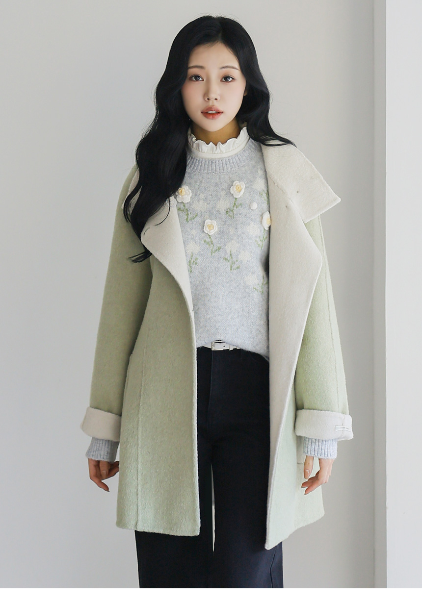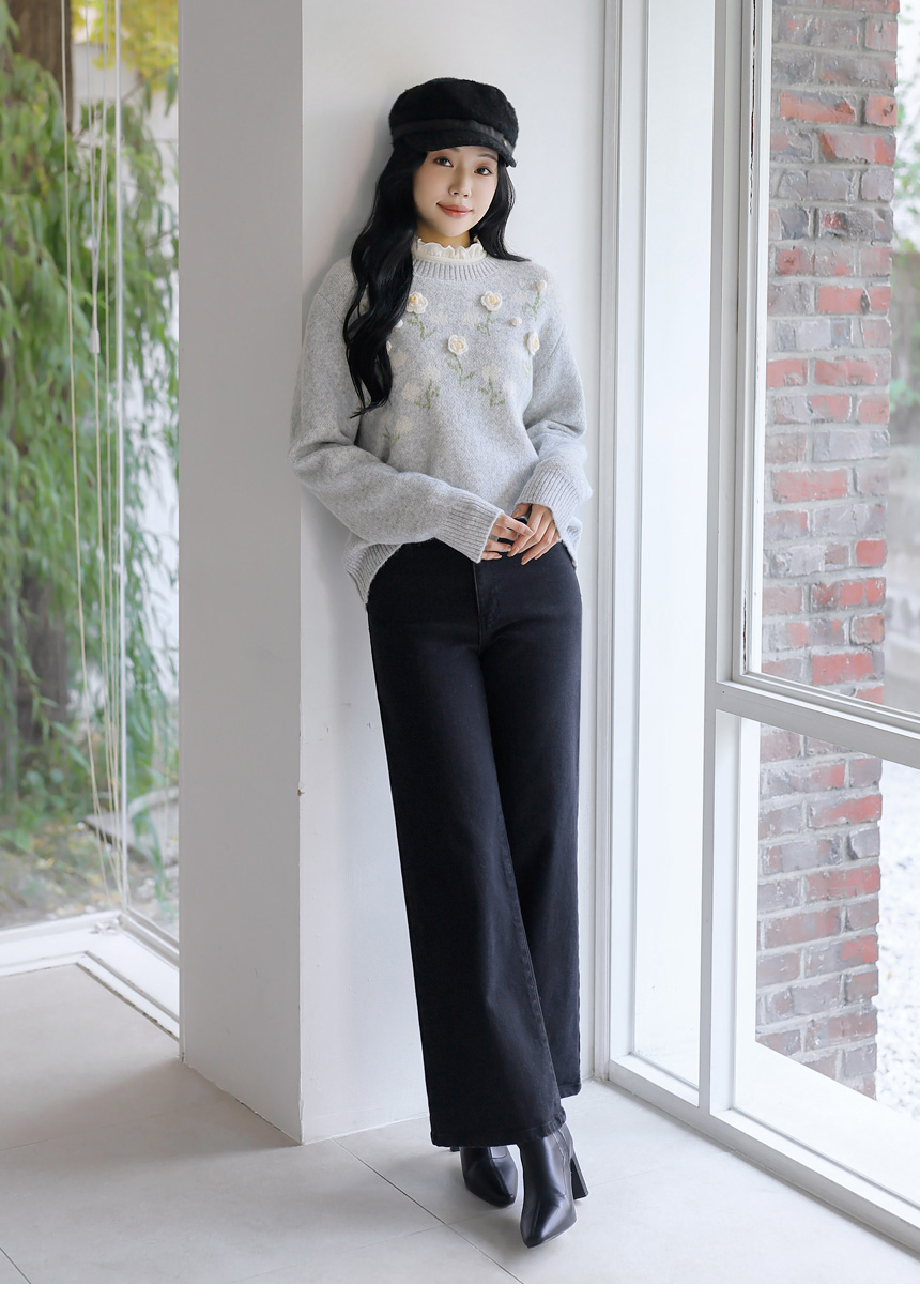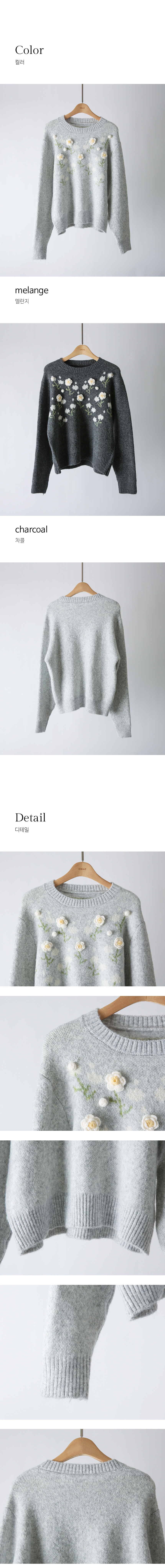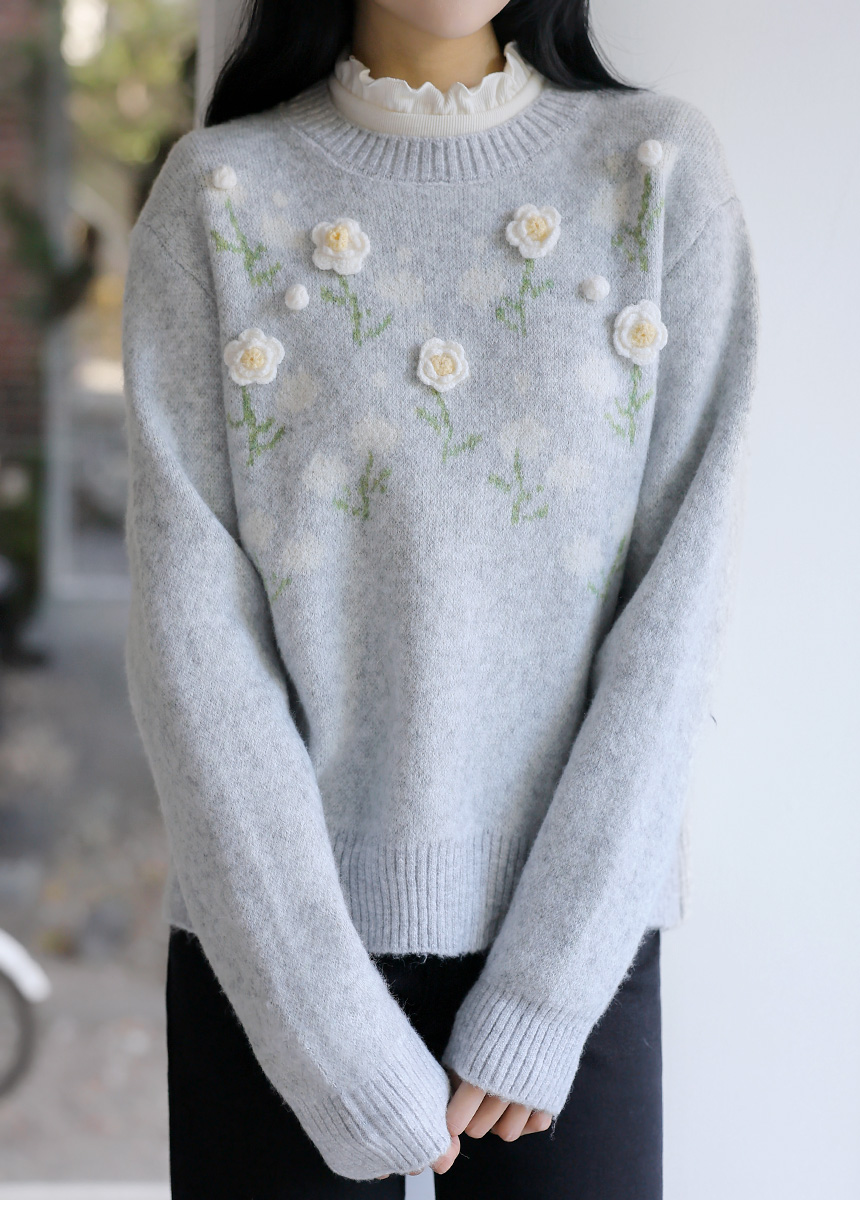 [The Onme] Cozy Petal Accent Embroidered Flower Knit Top
