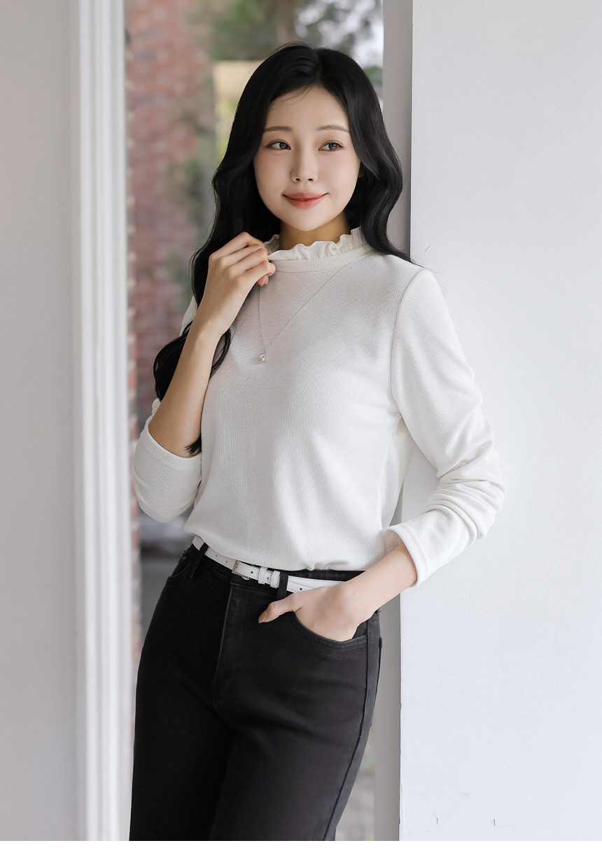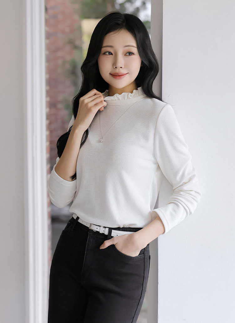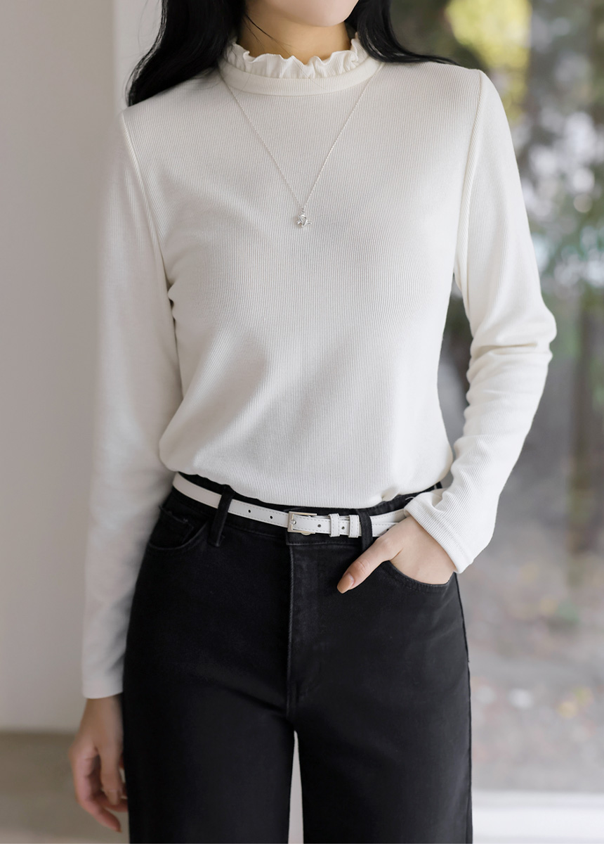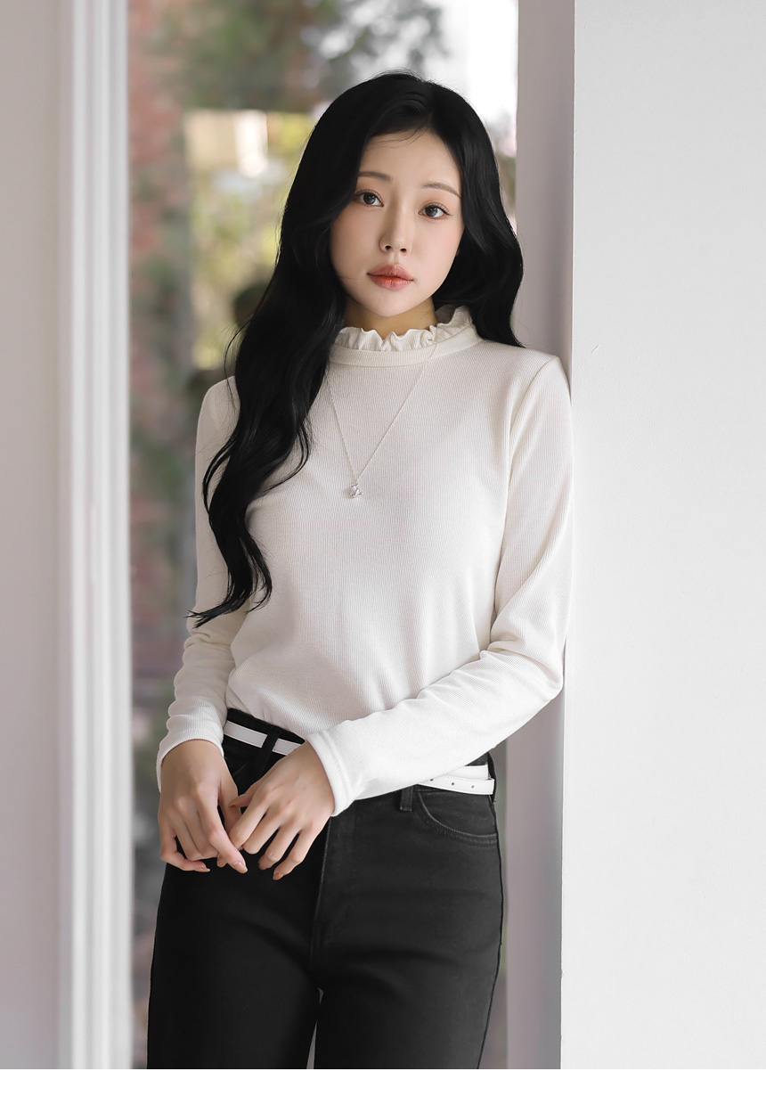 [The Onme] Soft Frill-Neck Fleece-Lined Winter Top
