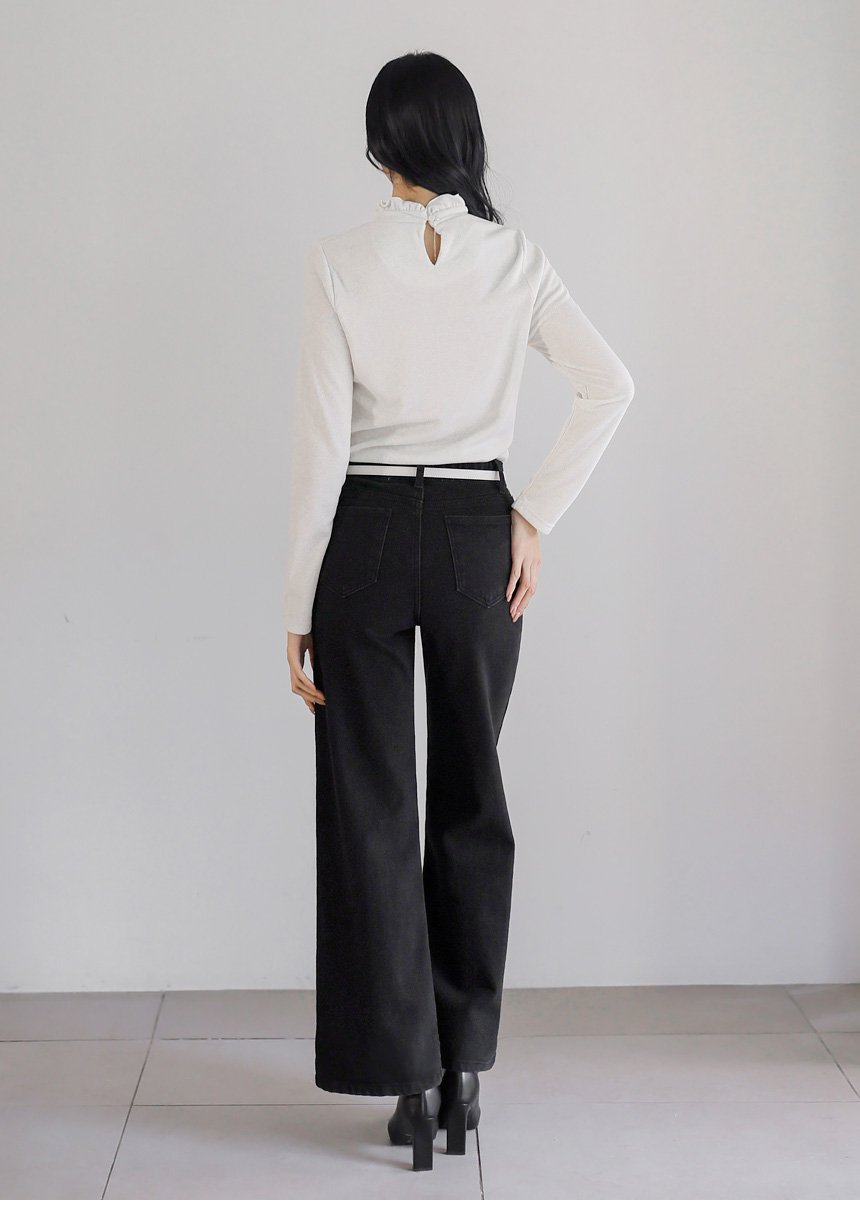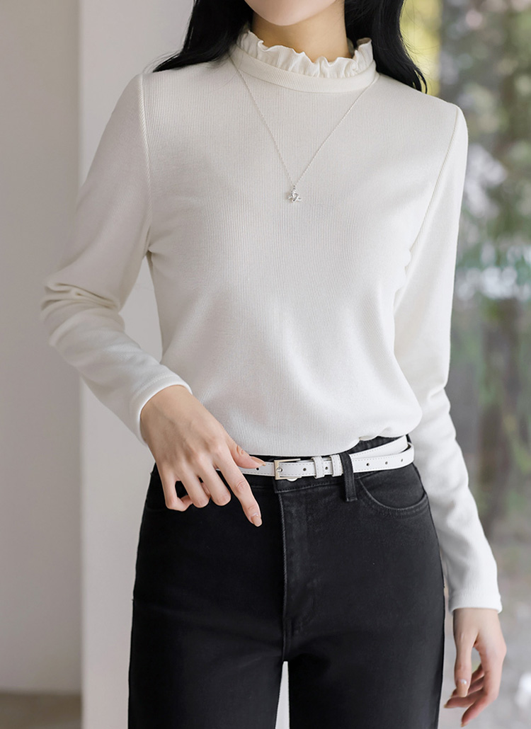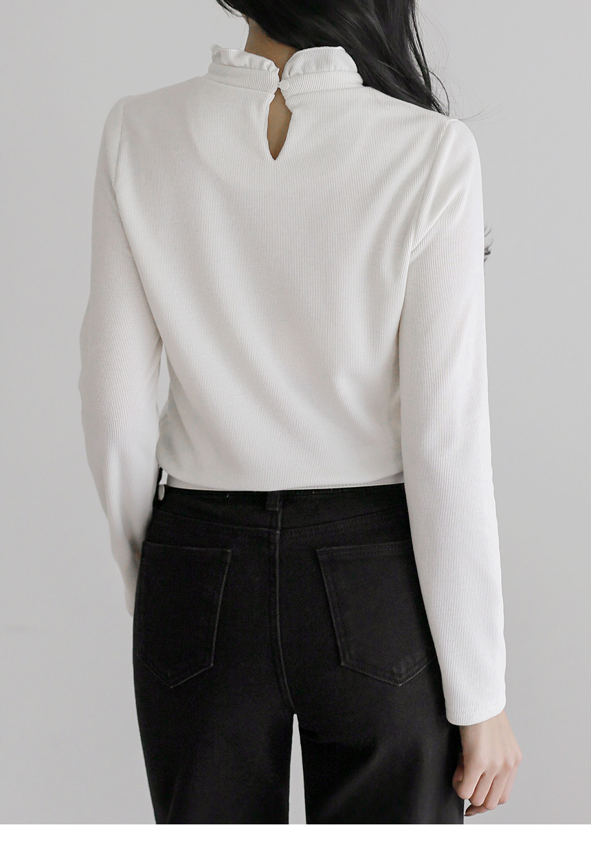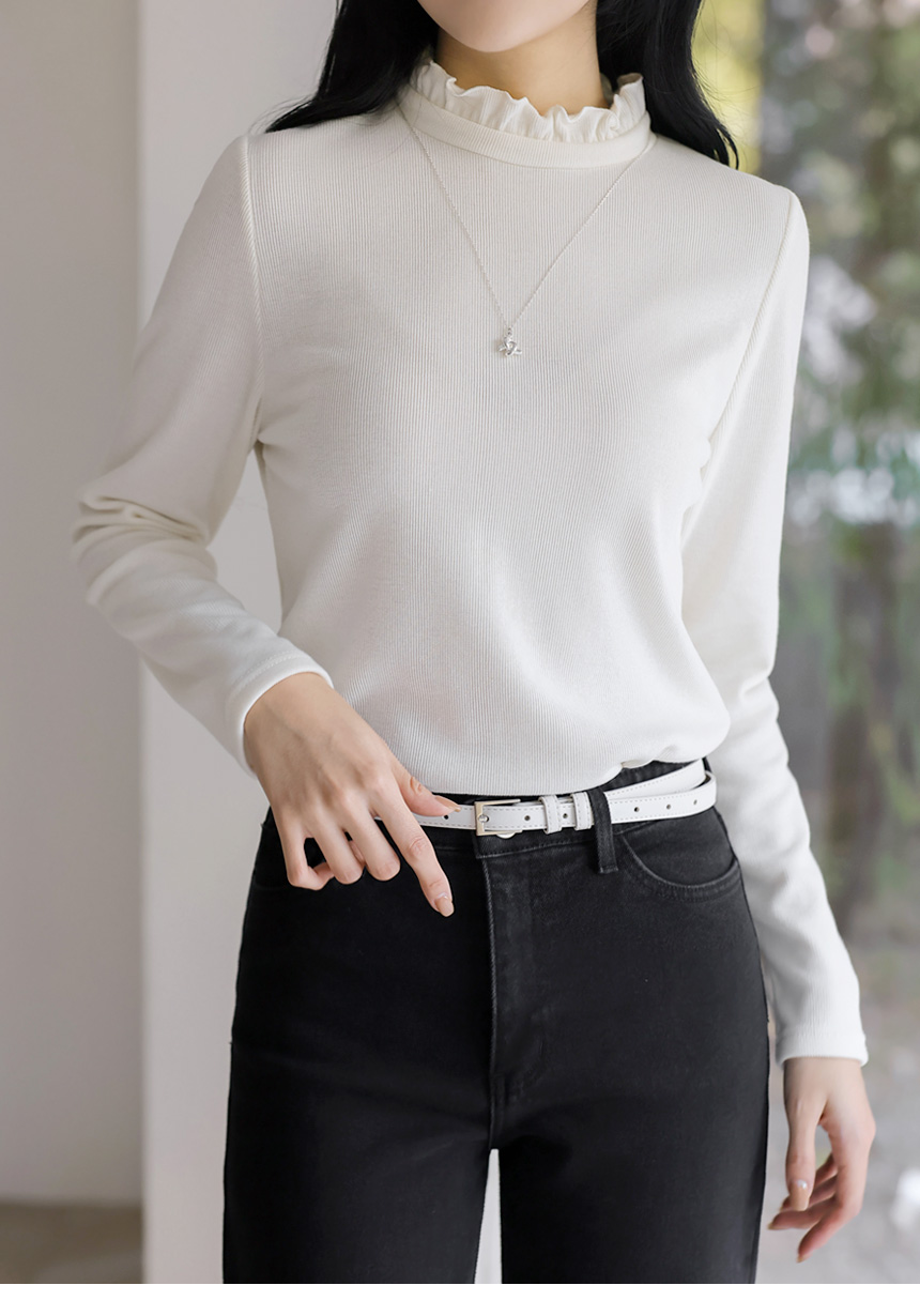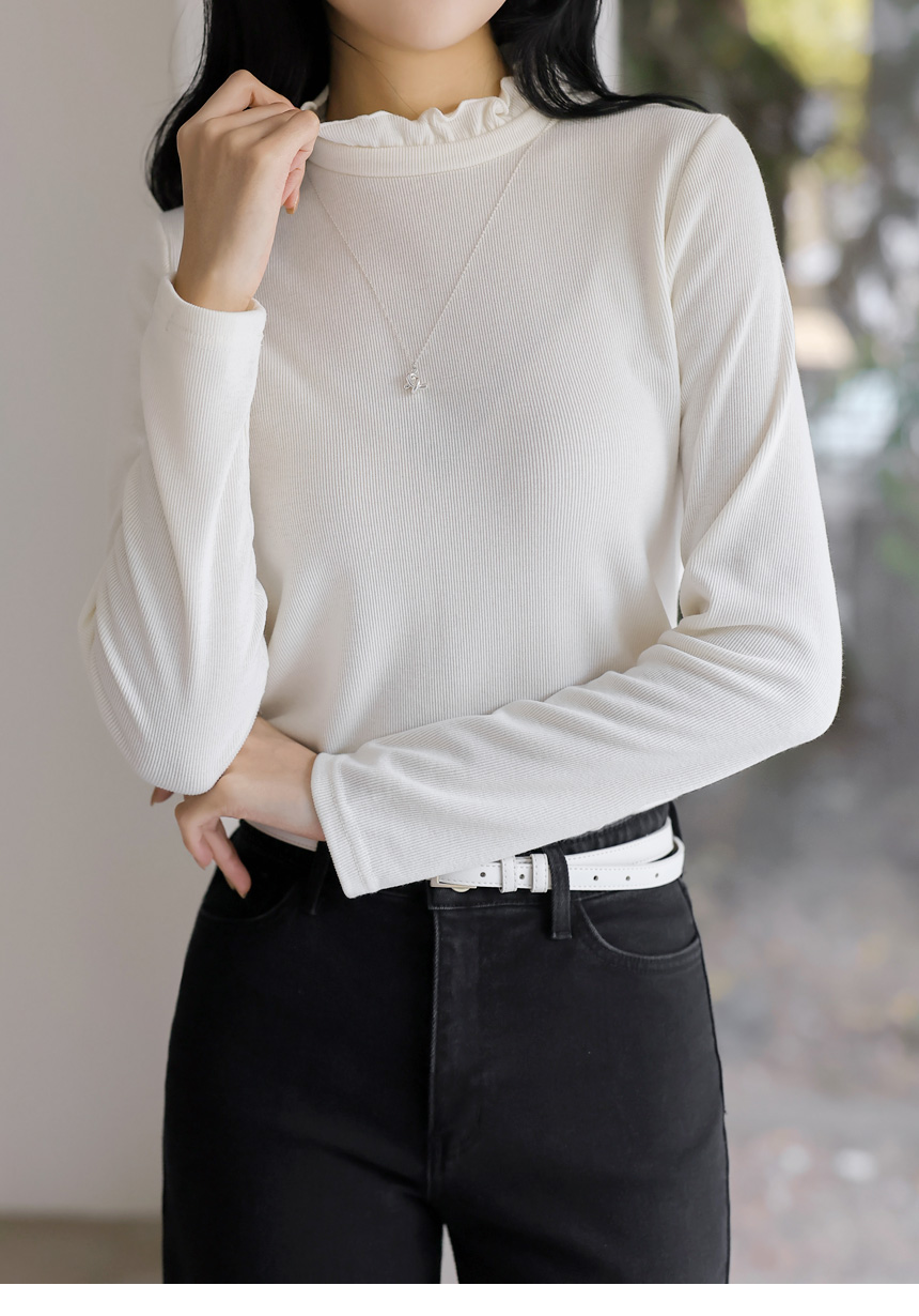 [The Onme] Soft Frill-Neck Fleece-Lined Winter Top