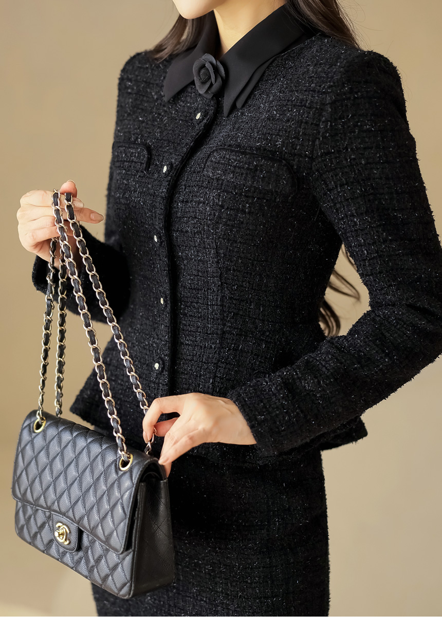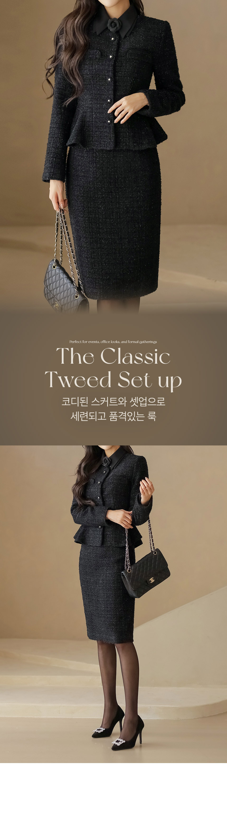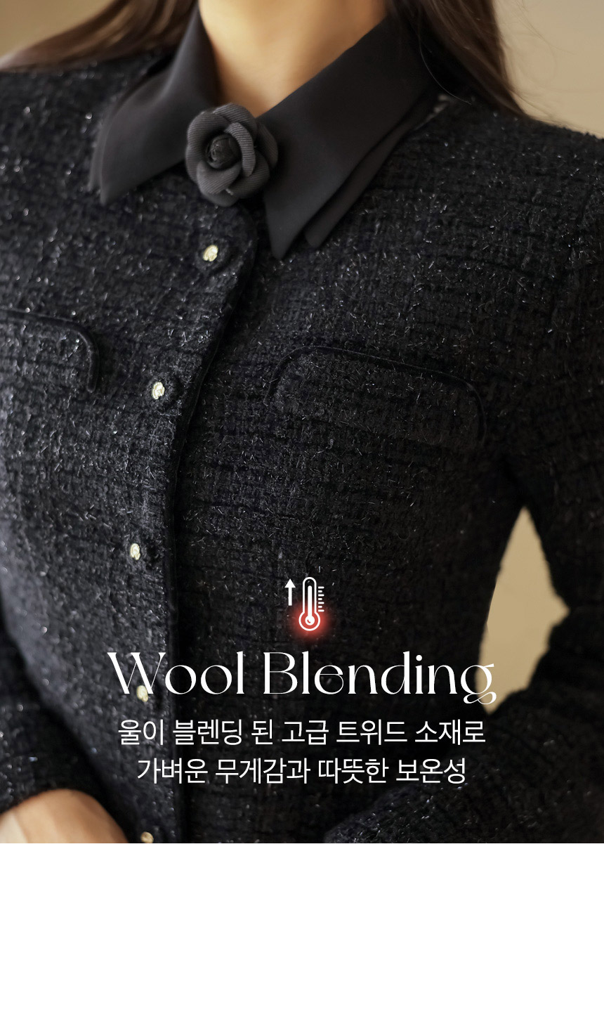 클래식한 트위드의 매력과 벨벳의 우아한 부드러움이 자연스럽게 어우러져있답니다
