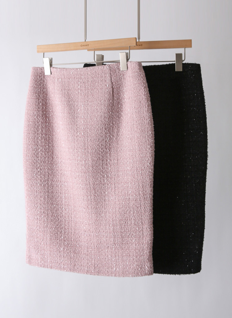우아한 실루엣을 완성하는 벨벳 트위드 H라인 미디 스커트에요