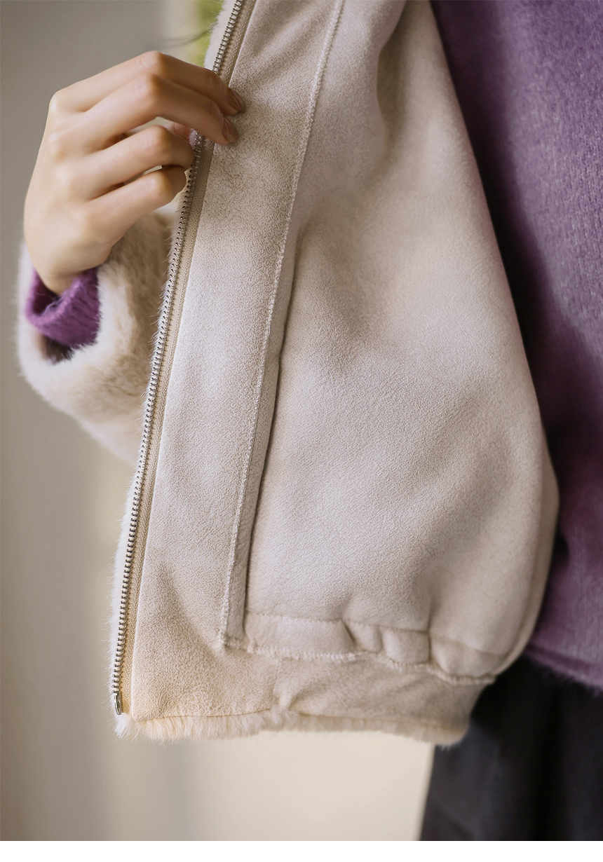 세미크롭 후드 퍼 집업 자켓이에요 :)