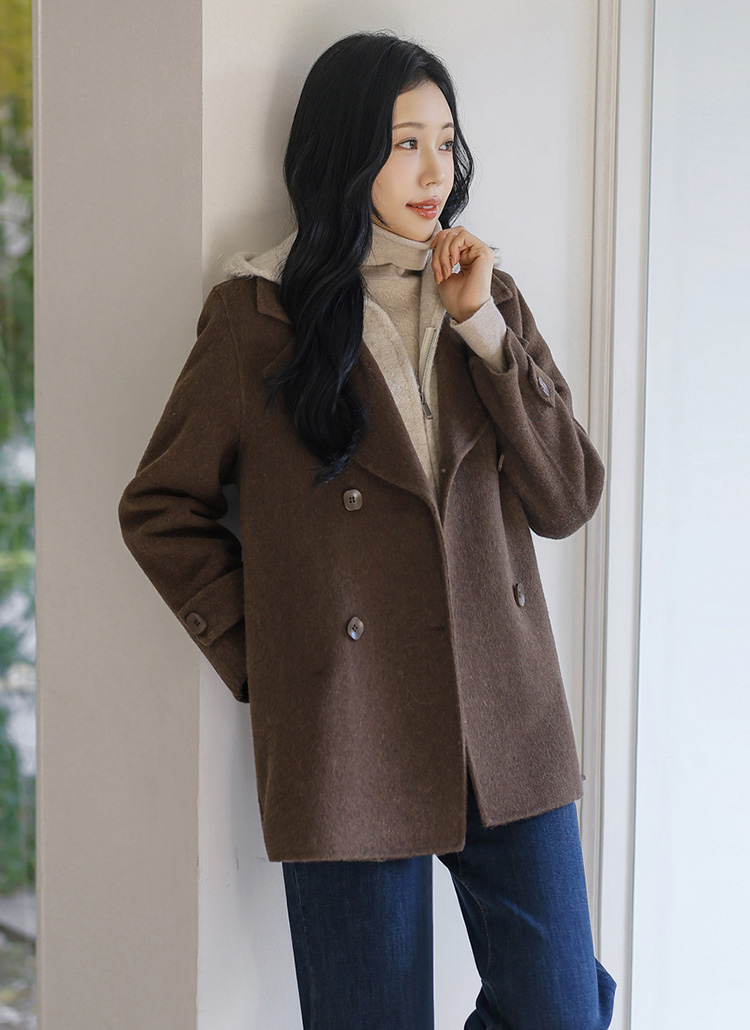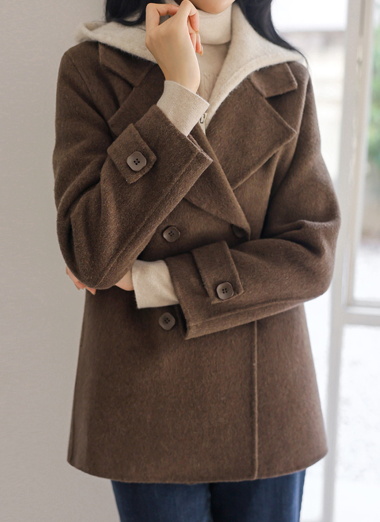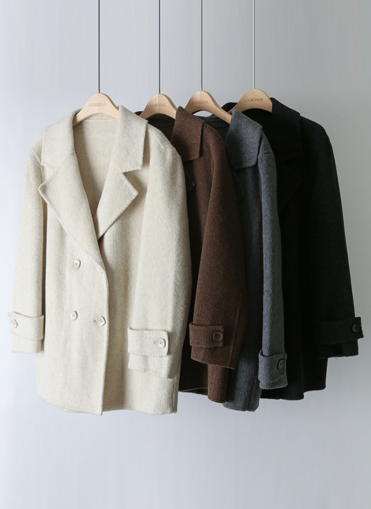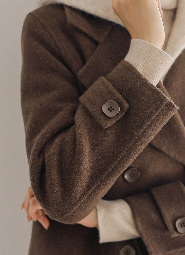 [A soft wool blend and refined double-breasted lines create a polished, warm silhouette that moves effortlessly from everyday elegance to formal styling.]