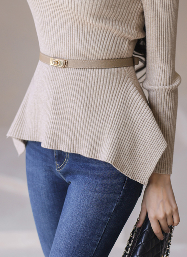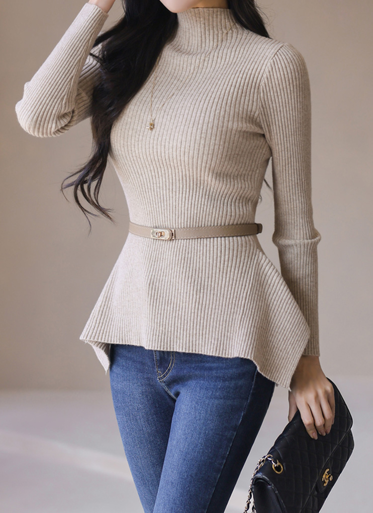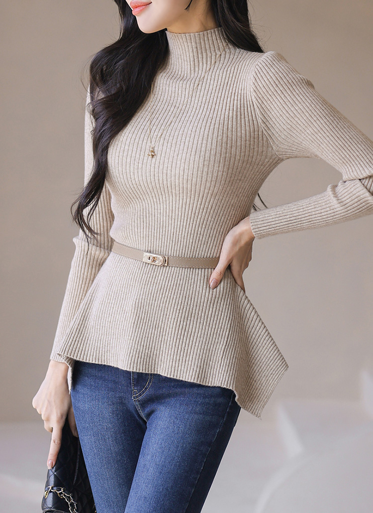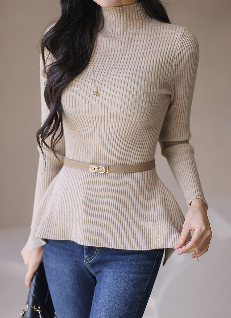 Sleek Ribbed Peplum Knit Top w/ Belt