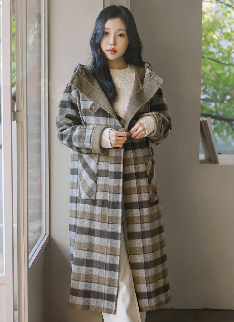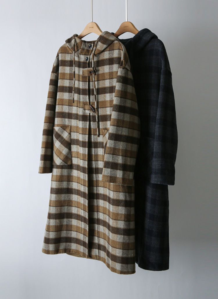 겨울 시즌 따뜻하게 착용하기 좋은 후드 체크 코트예요 :)