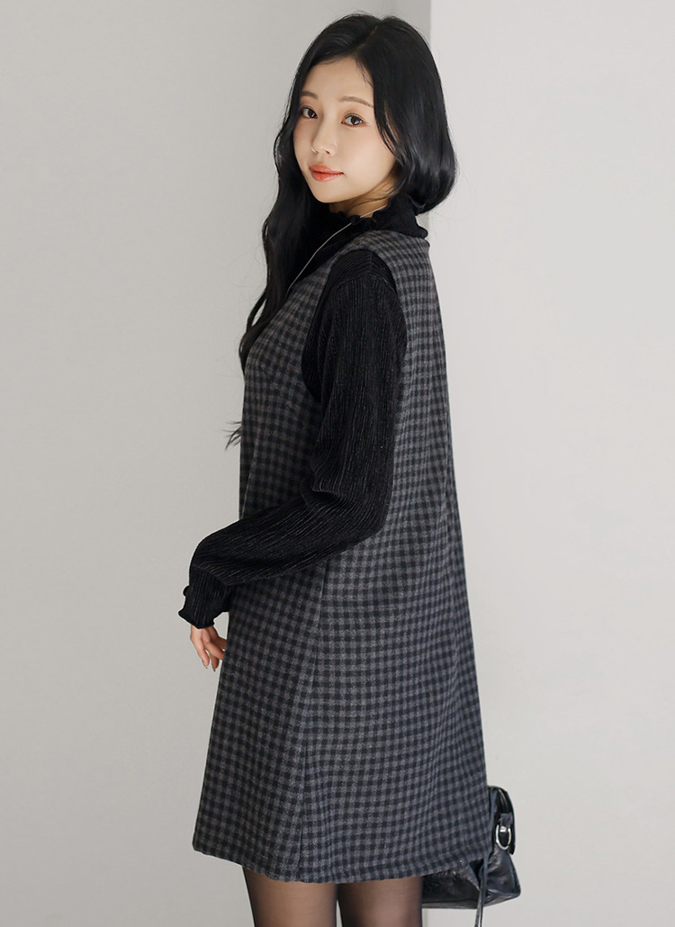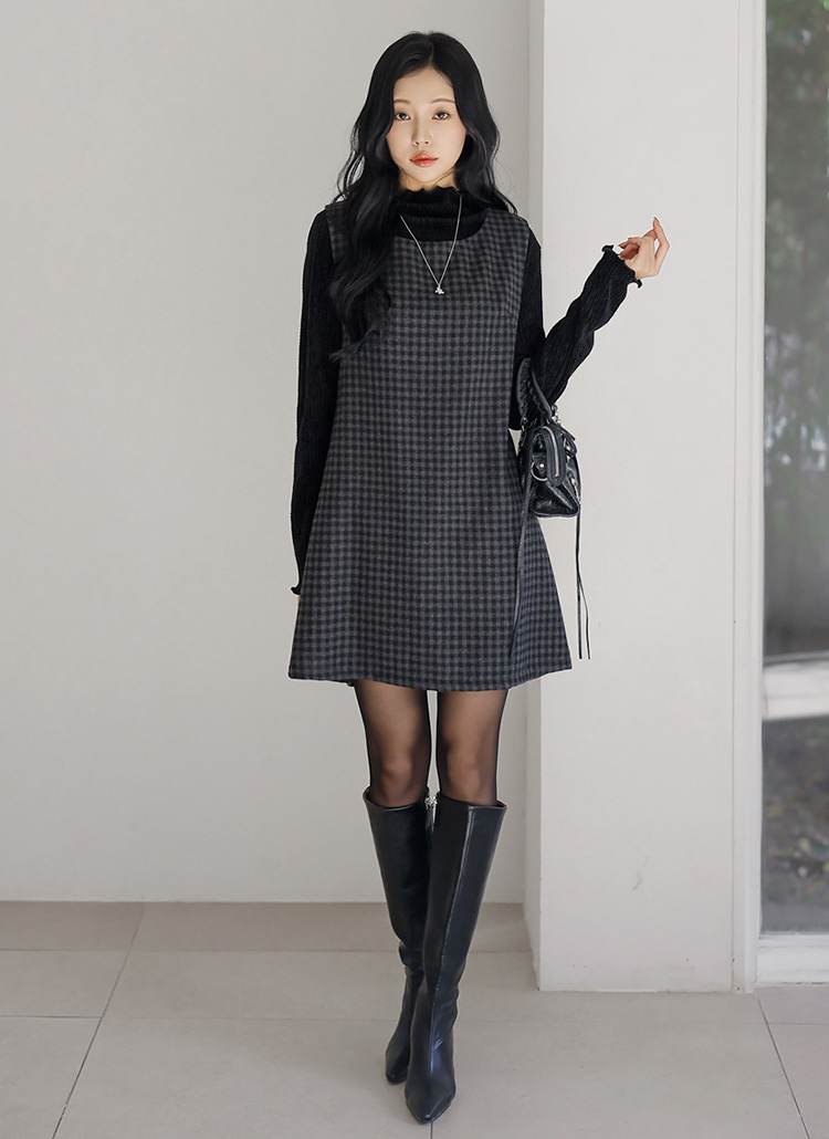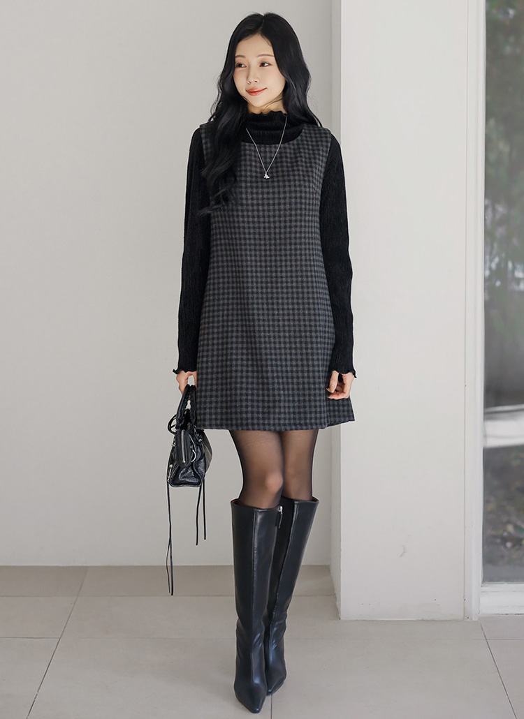 [The Onme] Meadow Check Layering Mini Jumper Dress