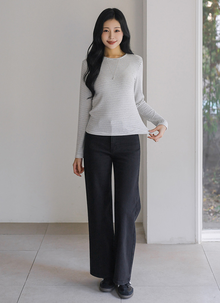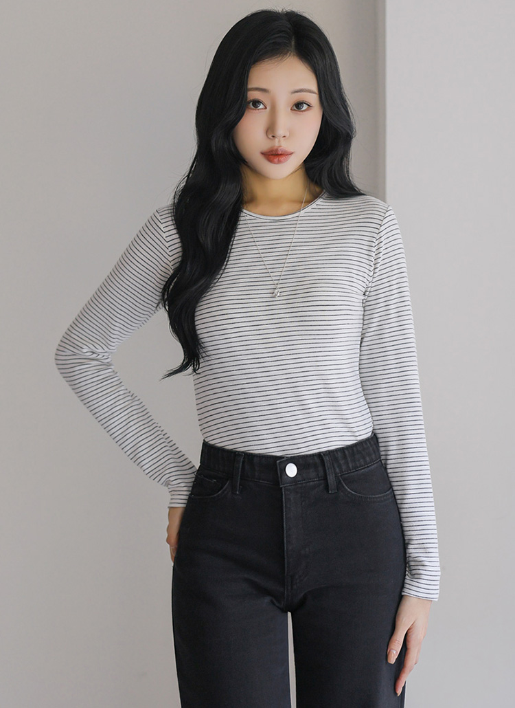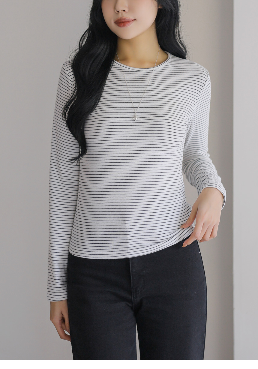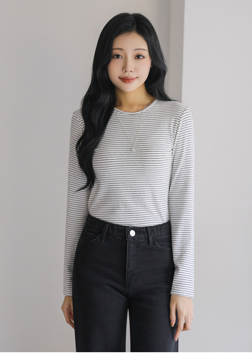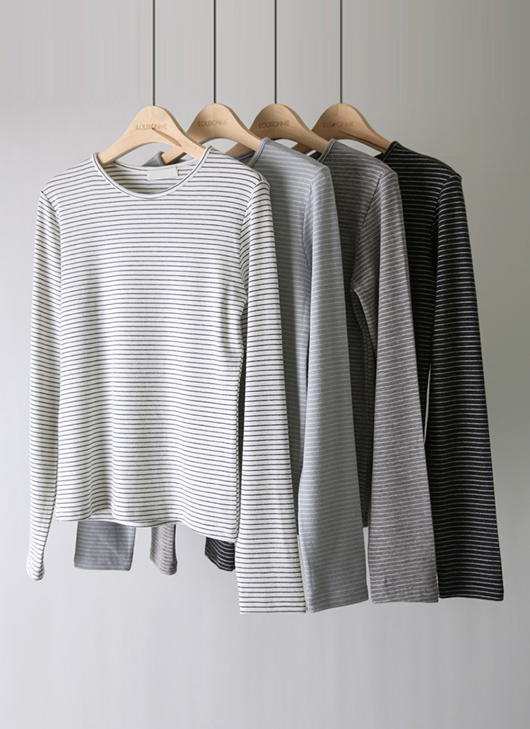 [The Onme] (4 Colors) Soft Angora-Blend Slim Stripe Tee