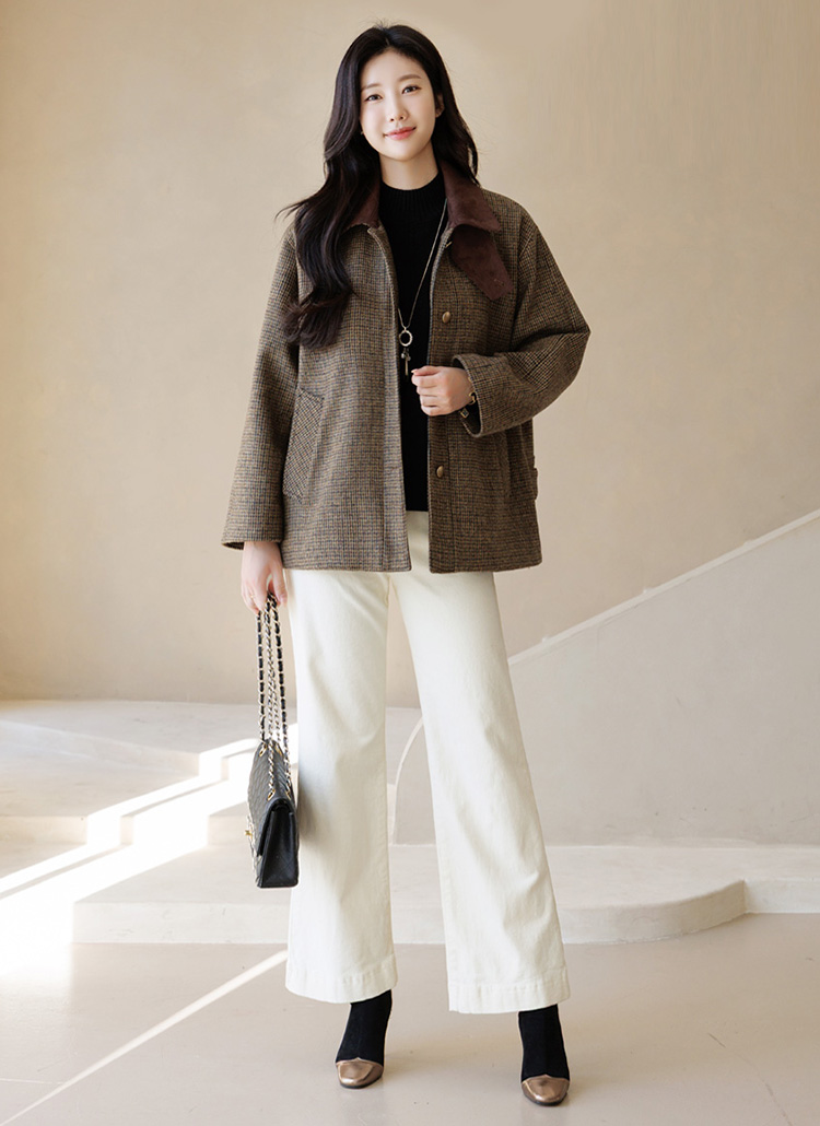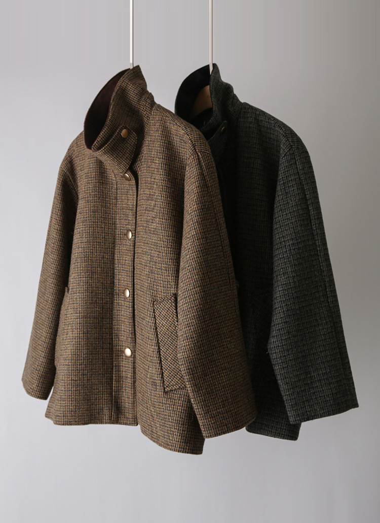고급스러움과 클래식한 분위기를 동시에 담아낸 체크 하프 코트에요