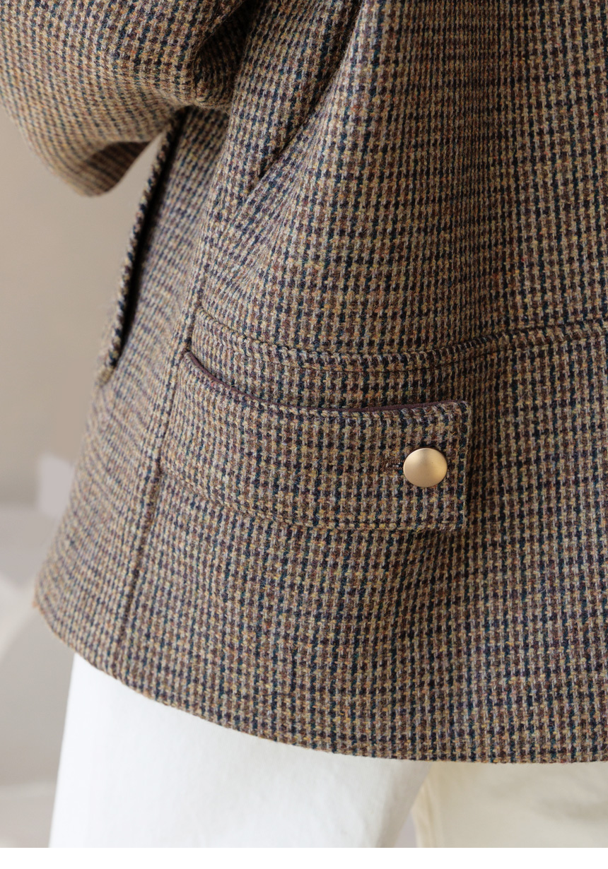 고급스러움과 클래식한 분위기를 동시에 담아낸 체크 하프 코트에요