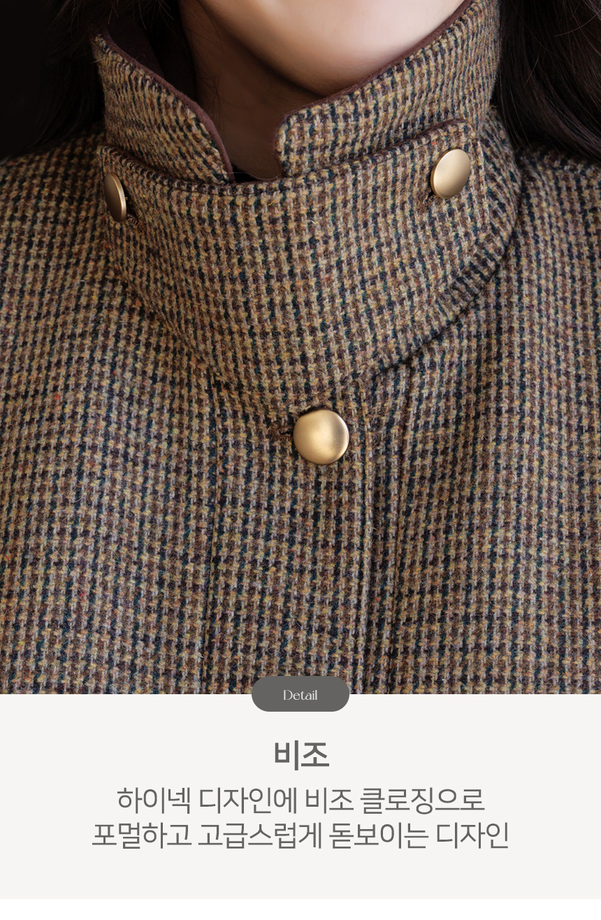 넥 부분의 비조 디테일로 하이넥 실루엣을 연출할 수 있어