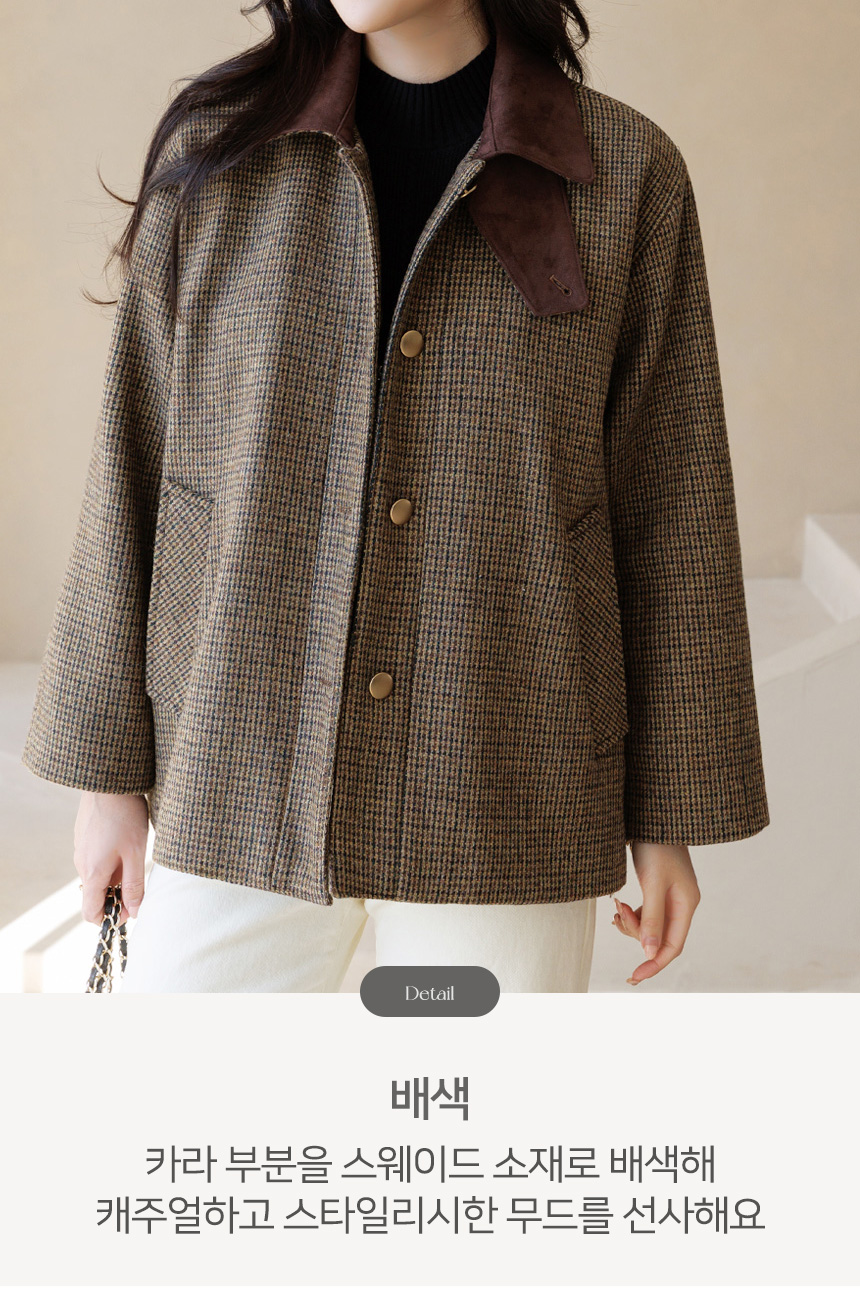 넥 라인에 스웨이드 배색이 포인트로 들어가있어 조화가 깊이있게 살아나고