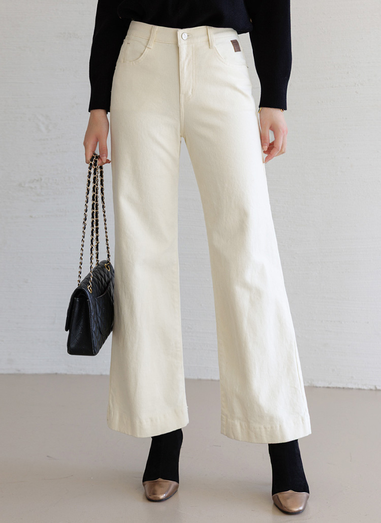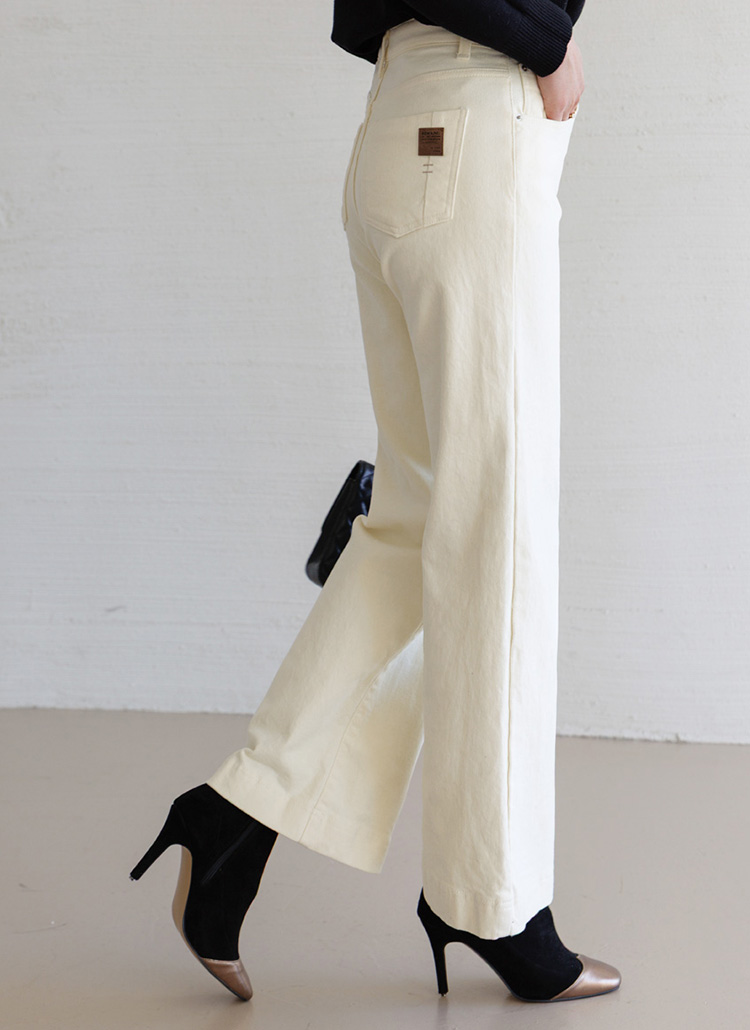 [Built for cold days, the gentle brushed interior and flexible hidden waist offer exceptional comfort, while the clean wide shape streamlines your winter outfits beautifully.]