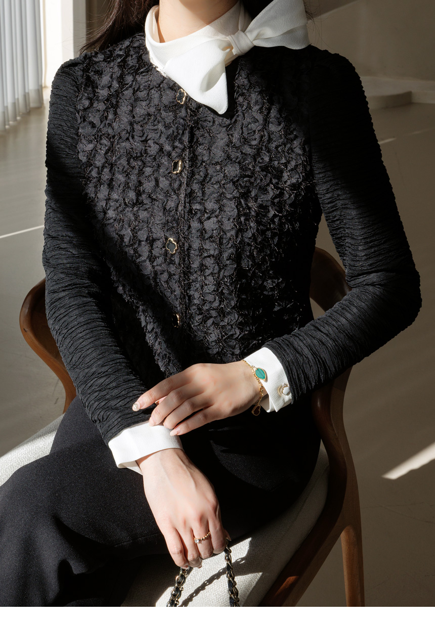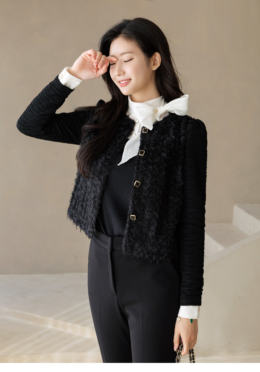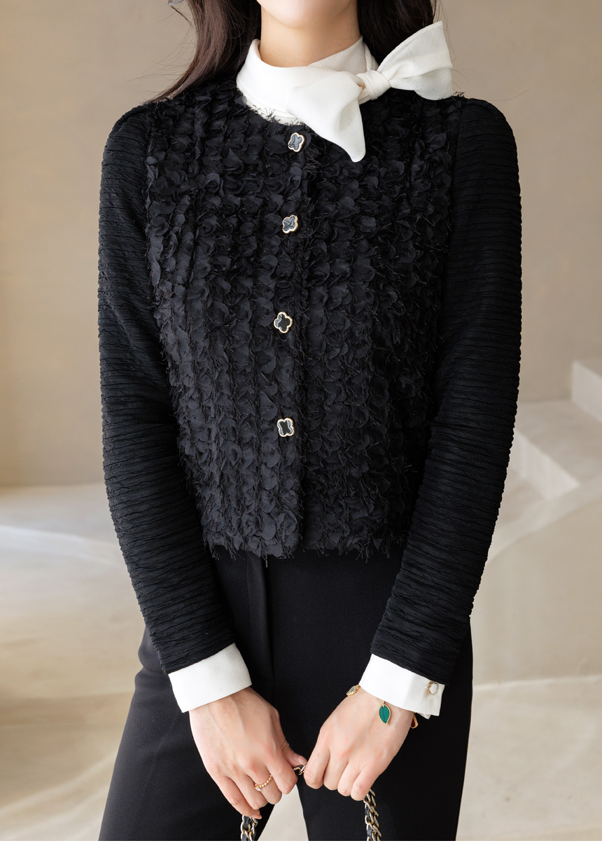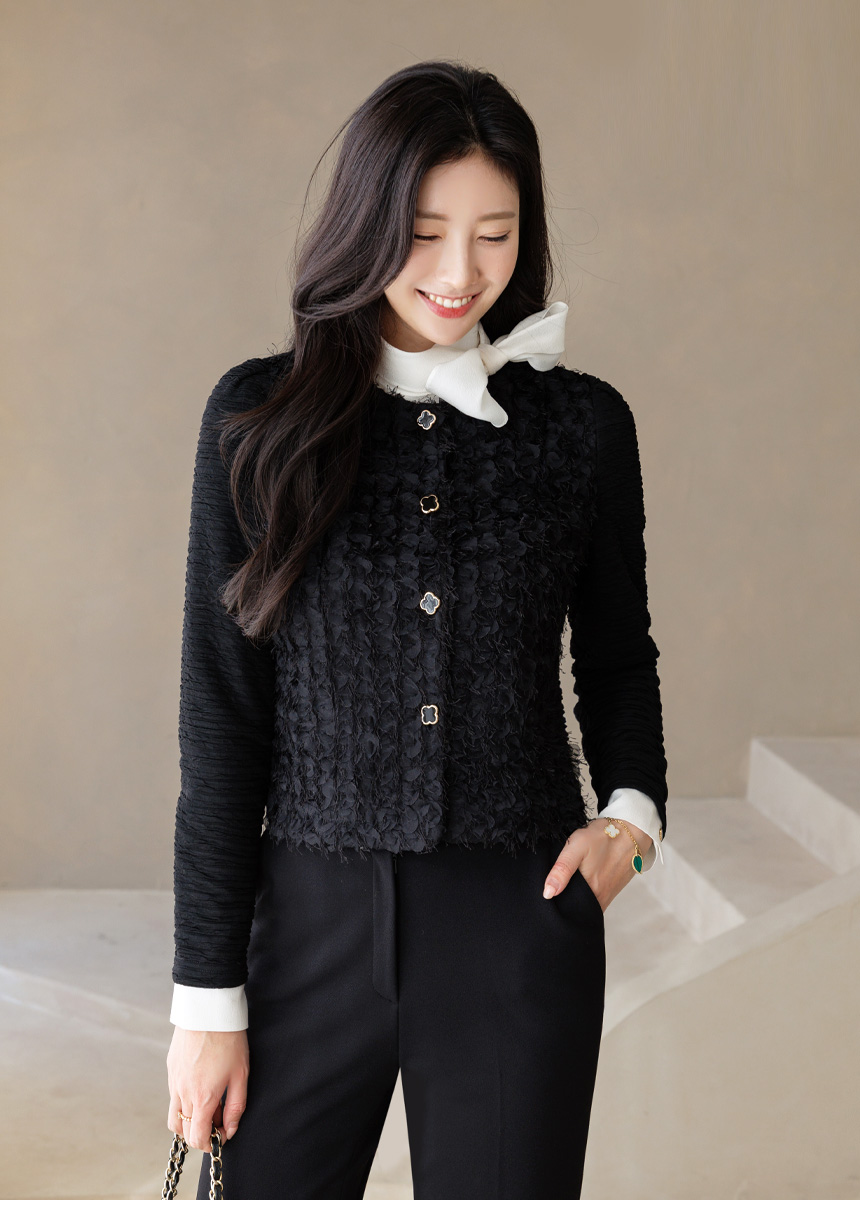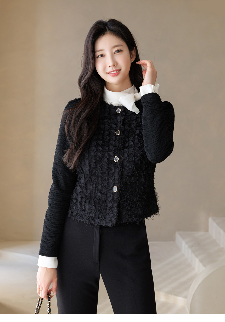 [LouisAngel] Petal-Textured Jacquard 2-Way Blouse Cardigan