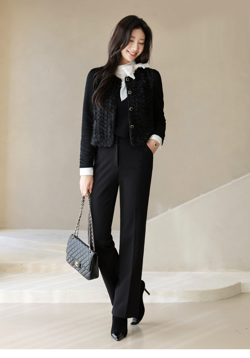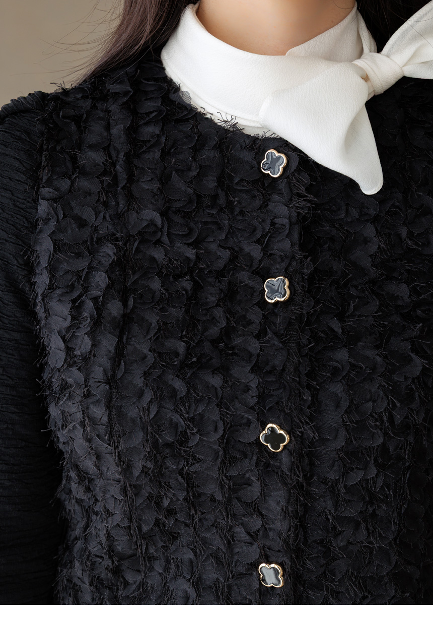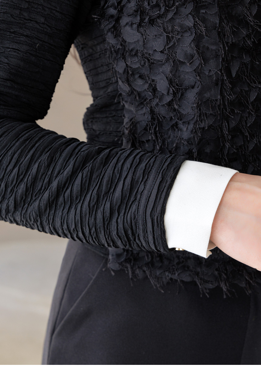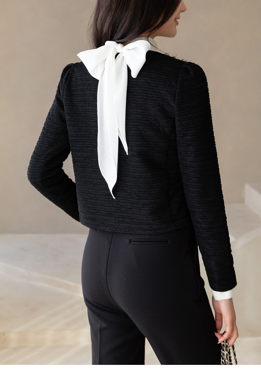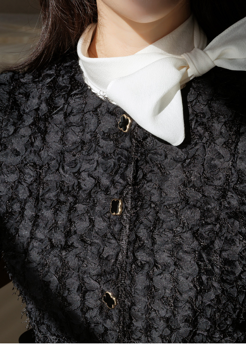 [LouisAngel] Petal-Textured Jacquard 2-Way Blouse Cardigan