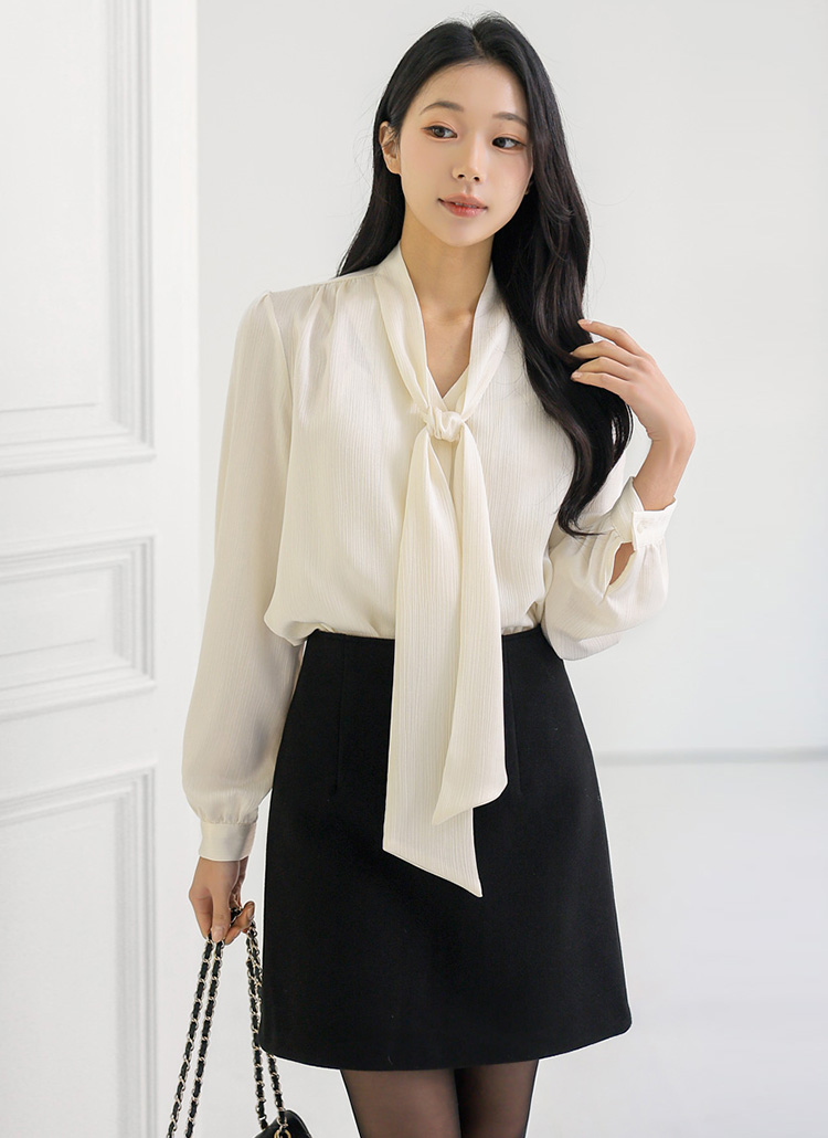 고급스러운 분위기를 한층 살려주는 타이 블라우스예요 :)